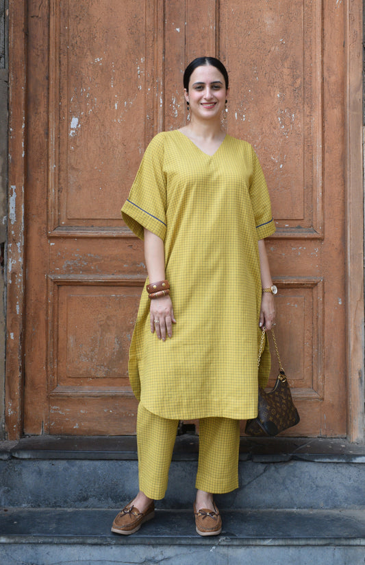 New ArrivalYellow Co-ord Set in Handwoven Cotton Checks