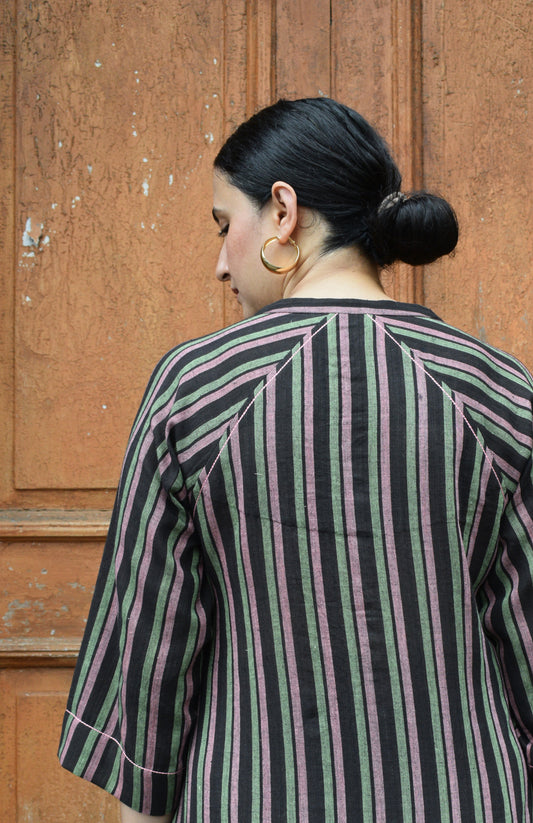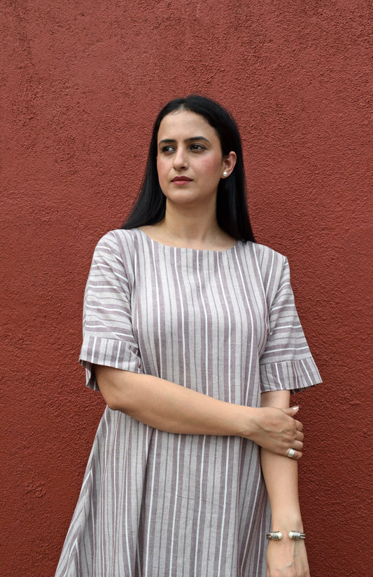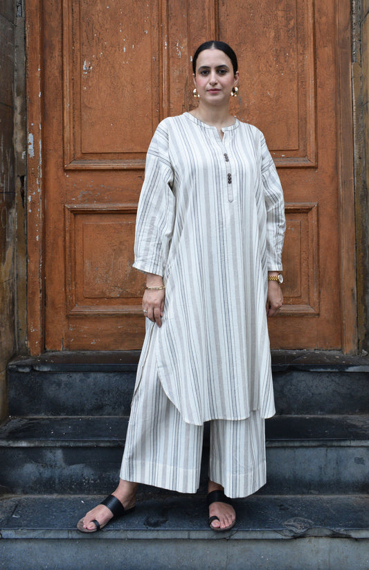 Salt and Pepper Antifit kurta in Handwoven Stripes