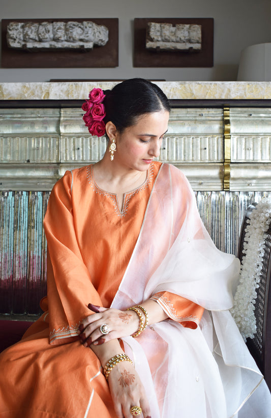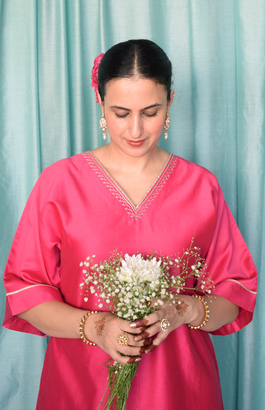 Kanak Chanderi Set with Hand Embroidered A line Kurta and Wide Legged Pyjama
