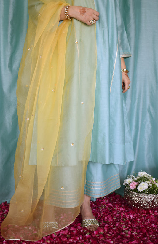 Rohini Chanderi Set with Sea Green Silk Organza Dupatta