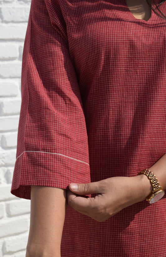 Maroon Kurta with Raglan sleeve in Handwoven Checks