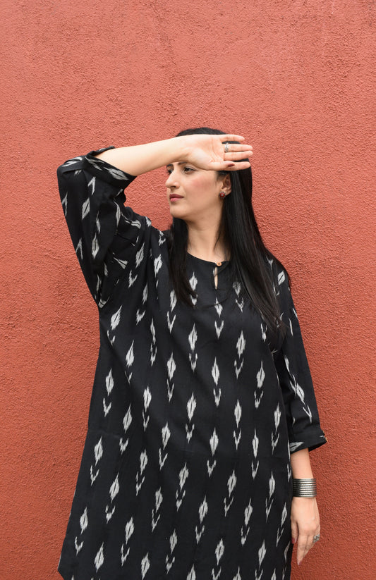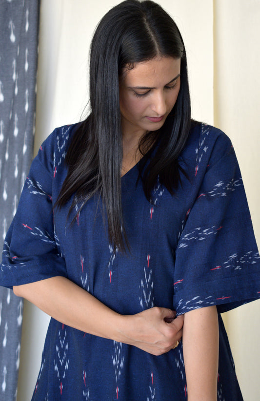 Only KurtaNavy Blue Ikat Antifit Kurta
