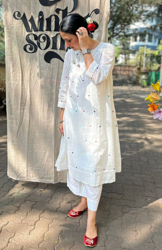 Charcoal Jamdani Phiran with Maroon Pyjama