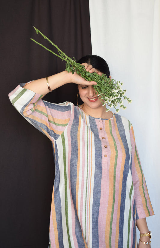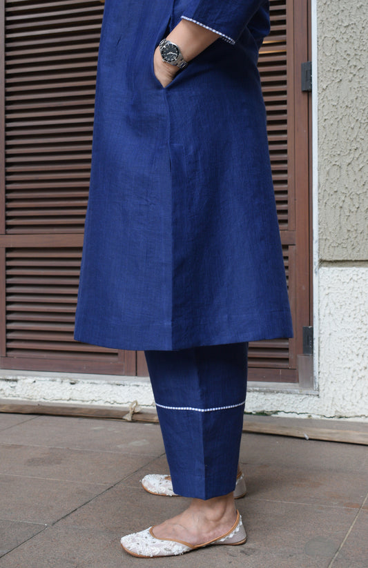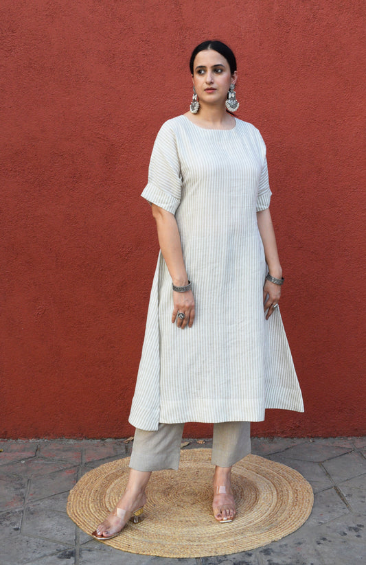 Pure Linen | Kurta & Pants SetPurple Linen Straight Fit Panelled Kurta Set with Trousers