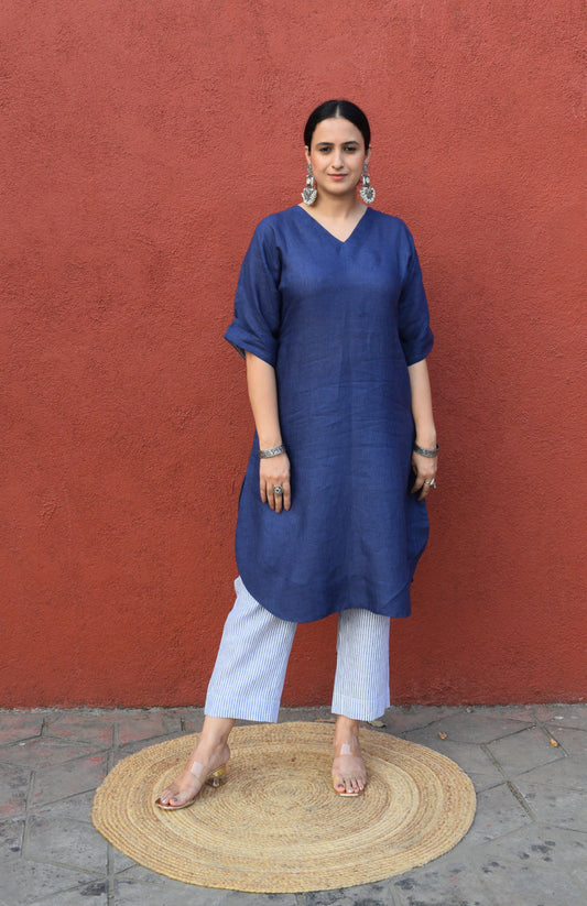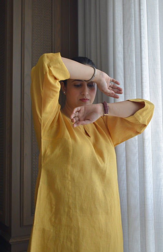 Pure Linen | Kurta OnlyPurple Linen Straight Fit Panelled Kurta