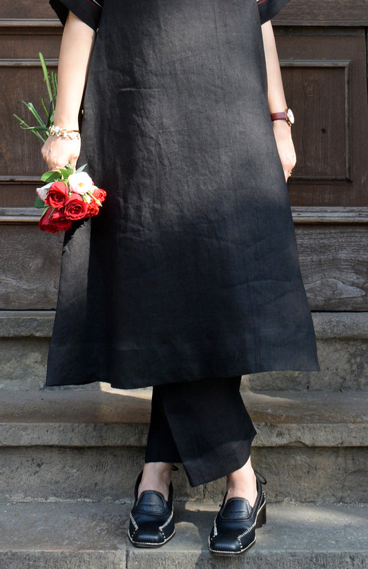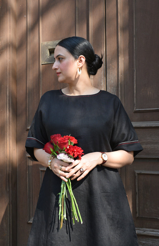 New Arrival | Kurta onlyInk Black A line Linen kurta with Short Dolman sleeves