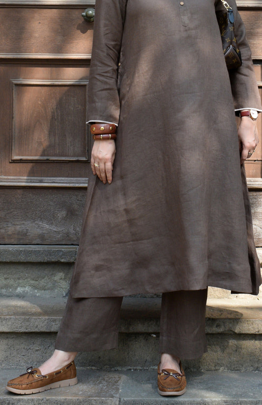 New Arrival | Kurta OnlyWalnut Brown Linen A Line Kurta with Placket