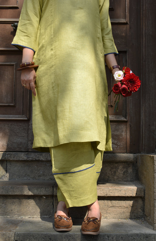 New Arrival | Kurta OnlyFresh Lime Linen Straight Fit Panelled Kurta