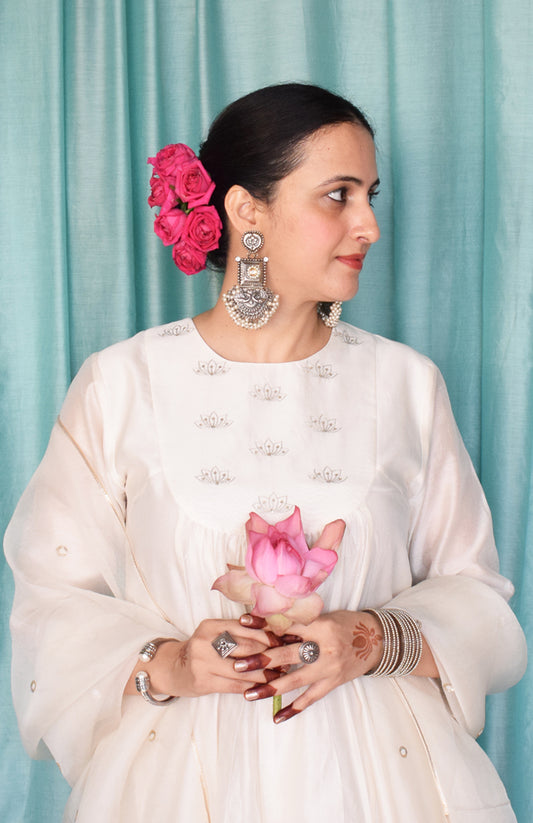 Sufi Chanderi Set with Off White Silk Organza Dupatta