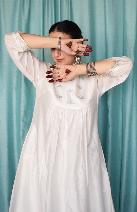 White A line Cotton Kurta with Panels and pajama