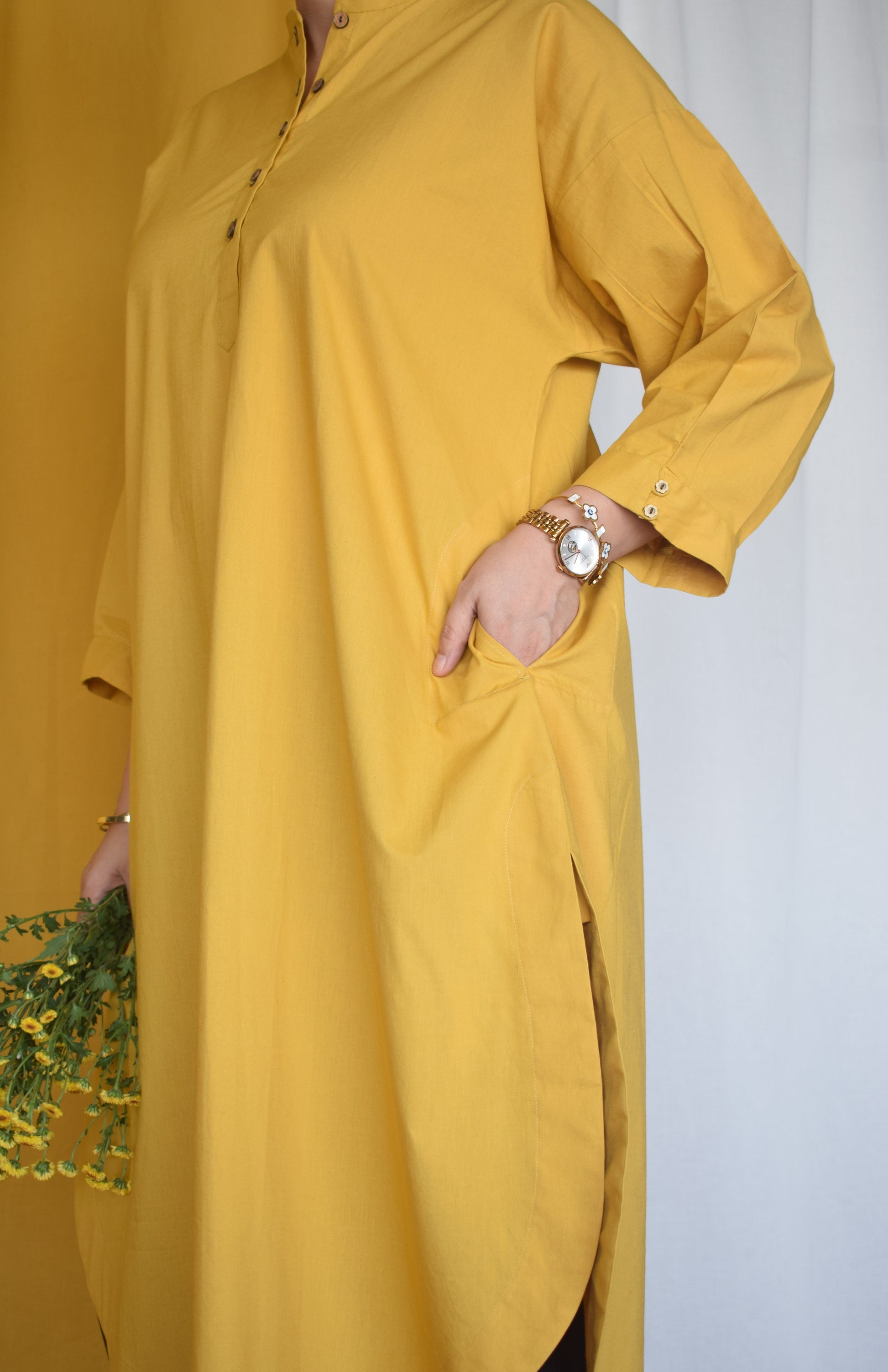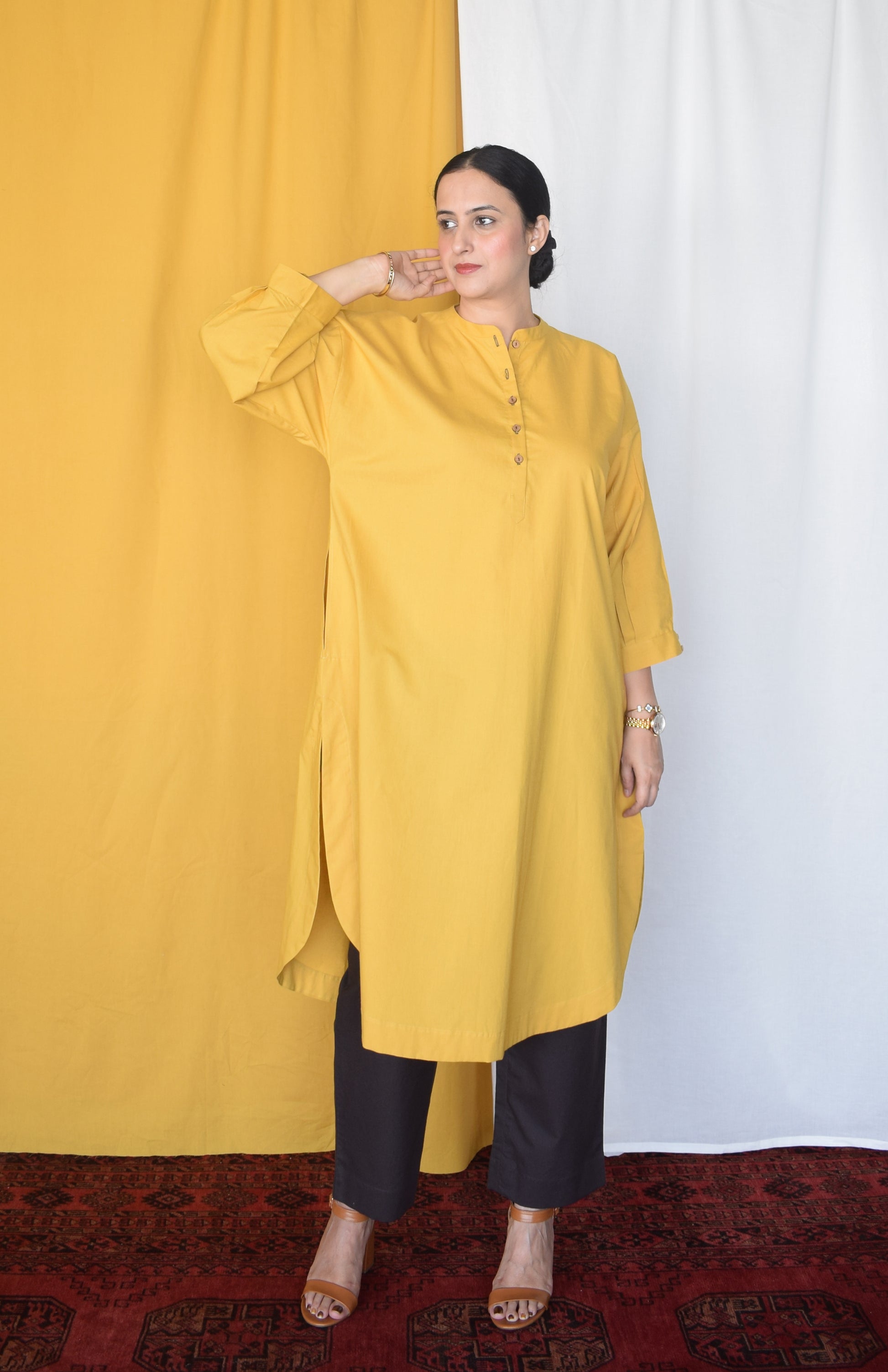 Anar Yellow Antifit Kurta Set with Charcoal Pants