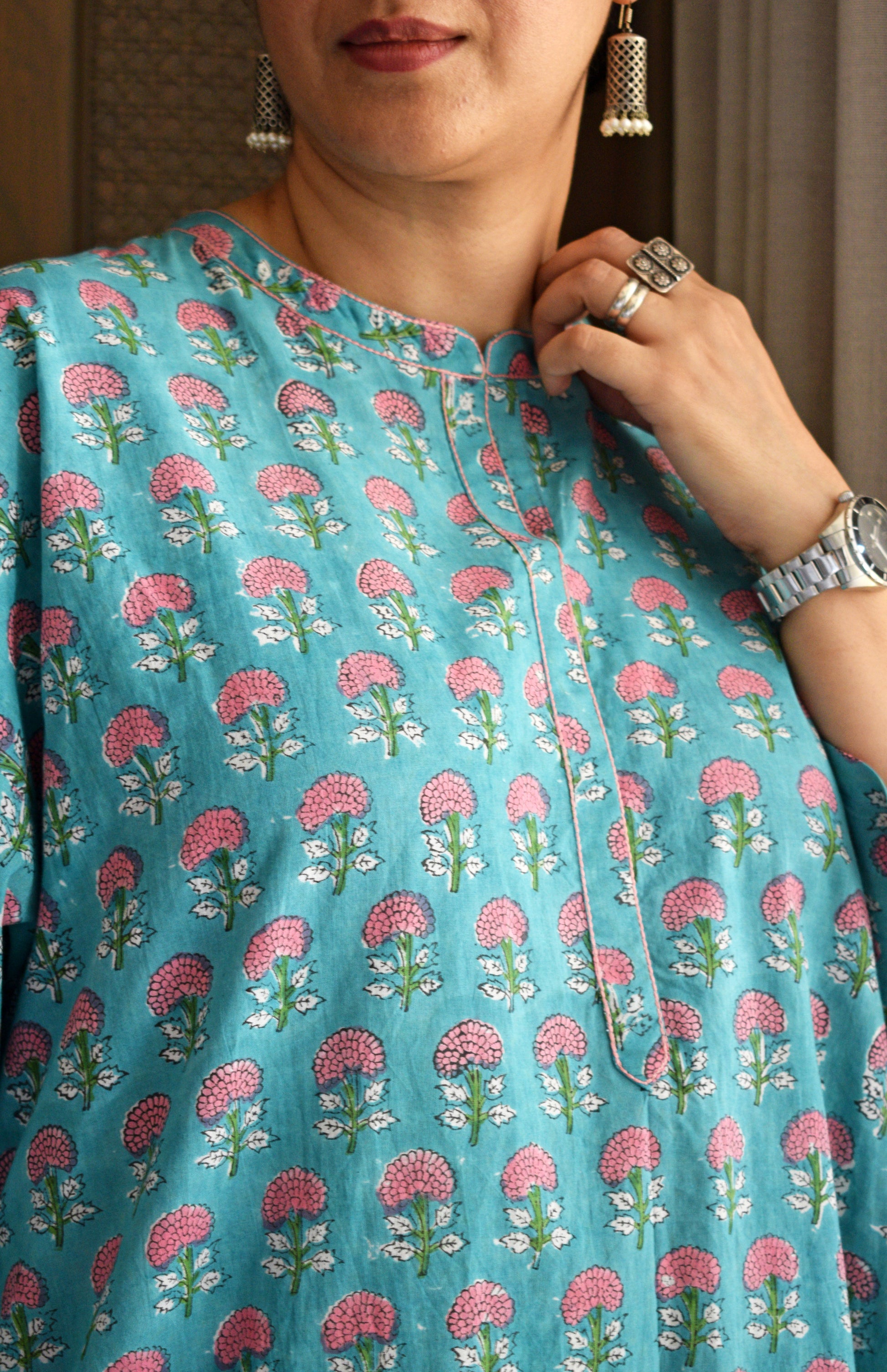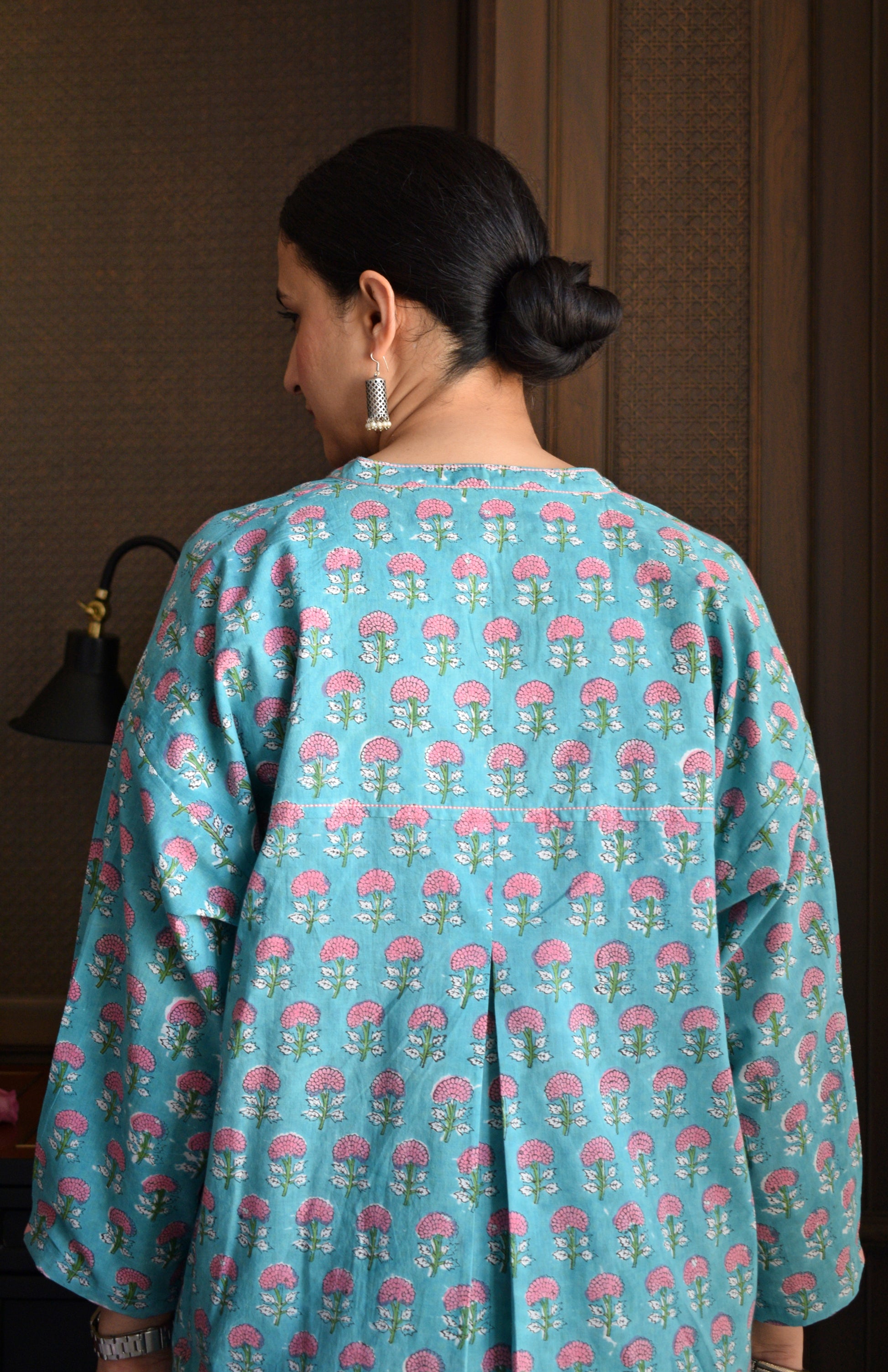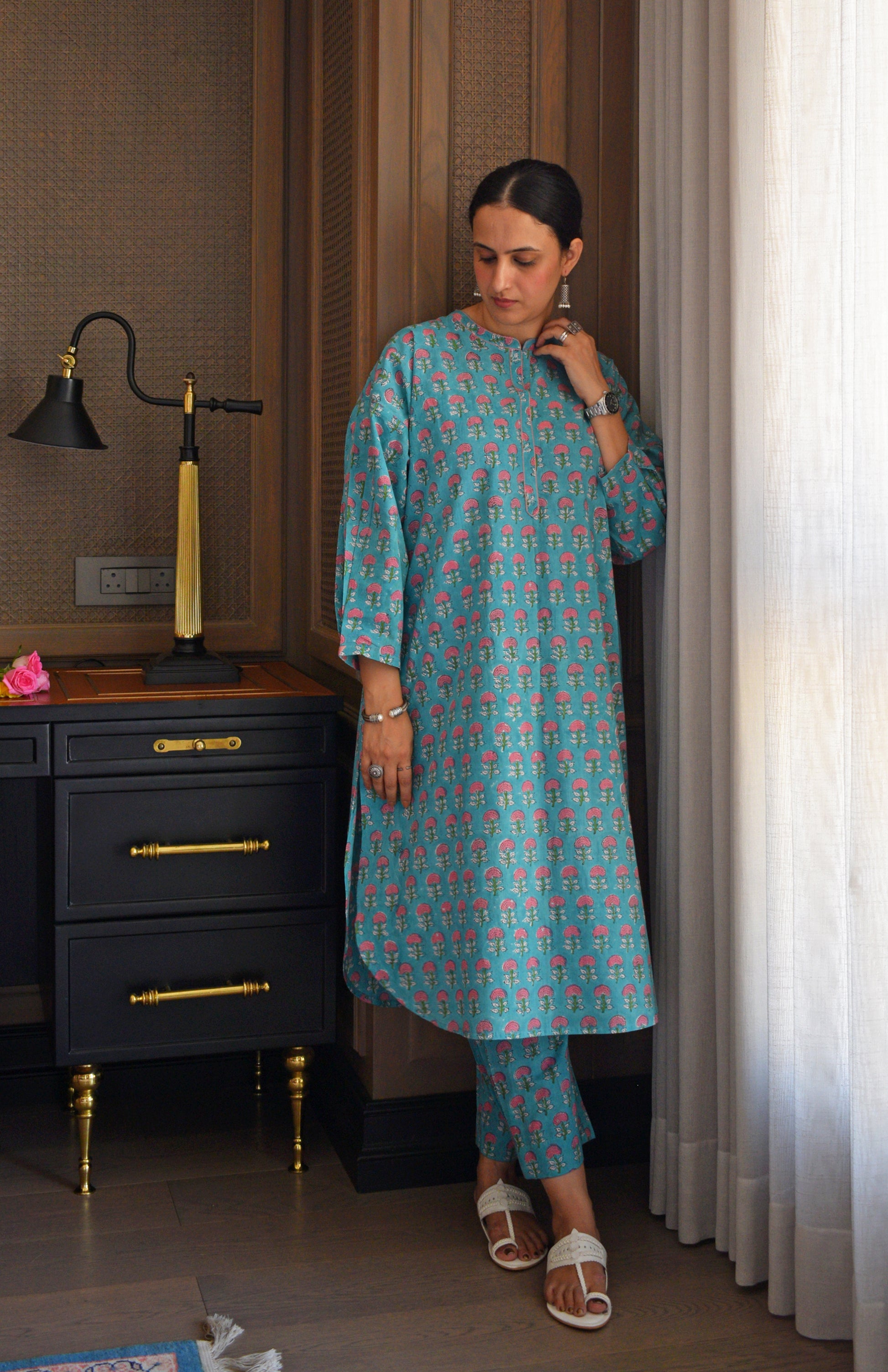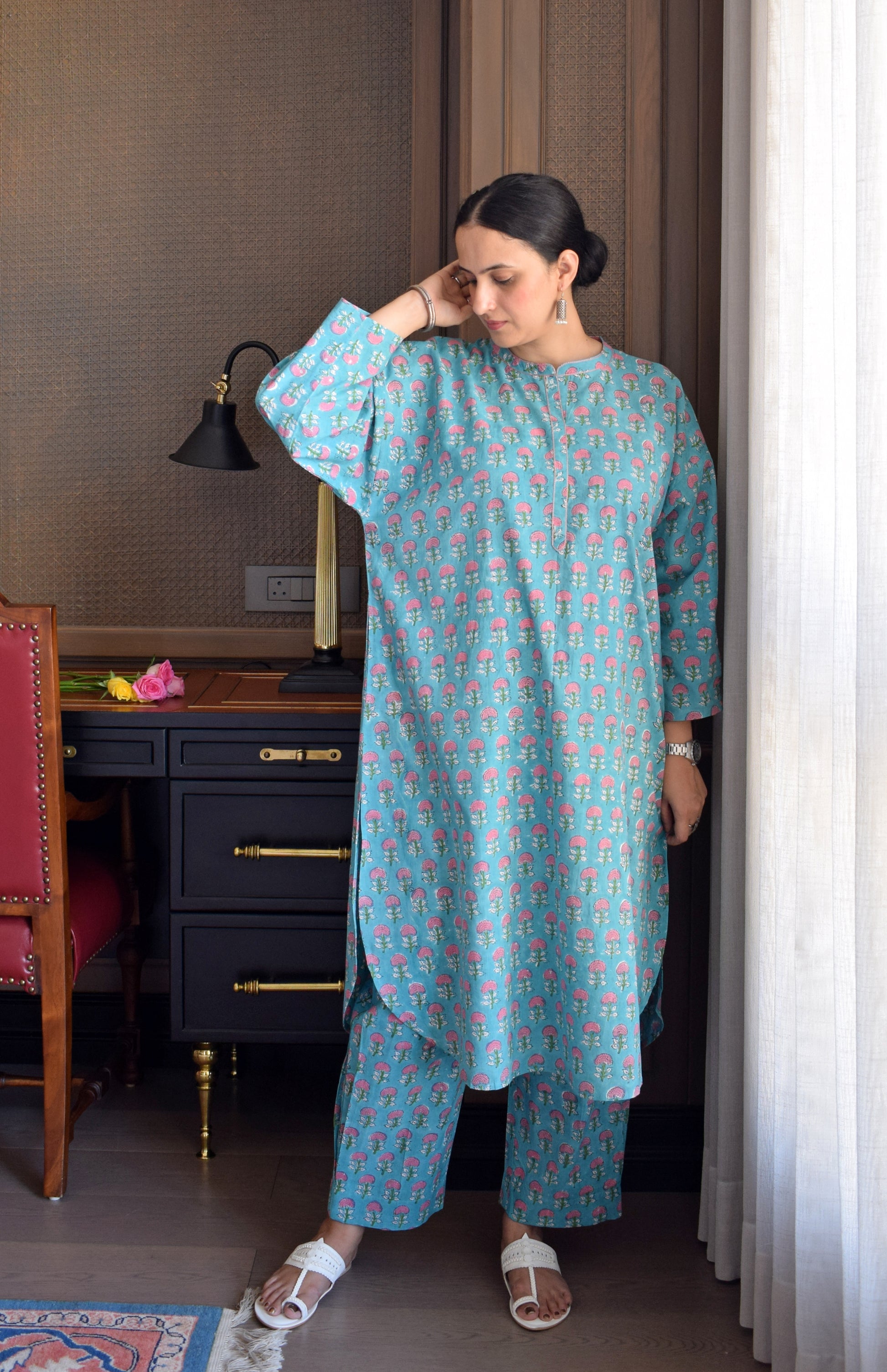 Blue and Pink Handblock Printed Antifit Co-Ord Set
