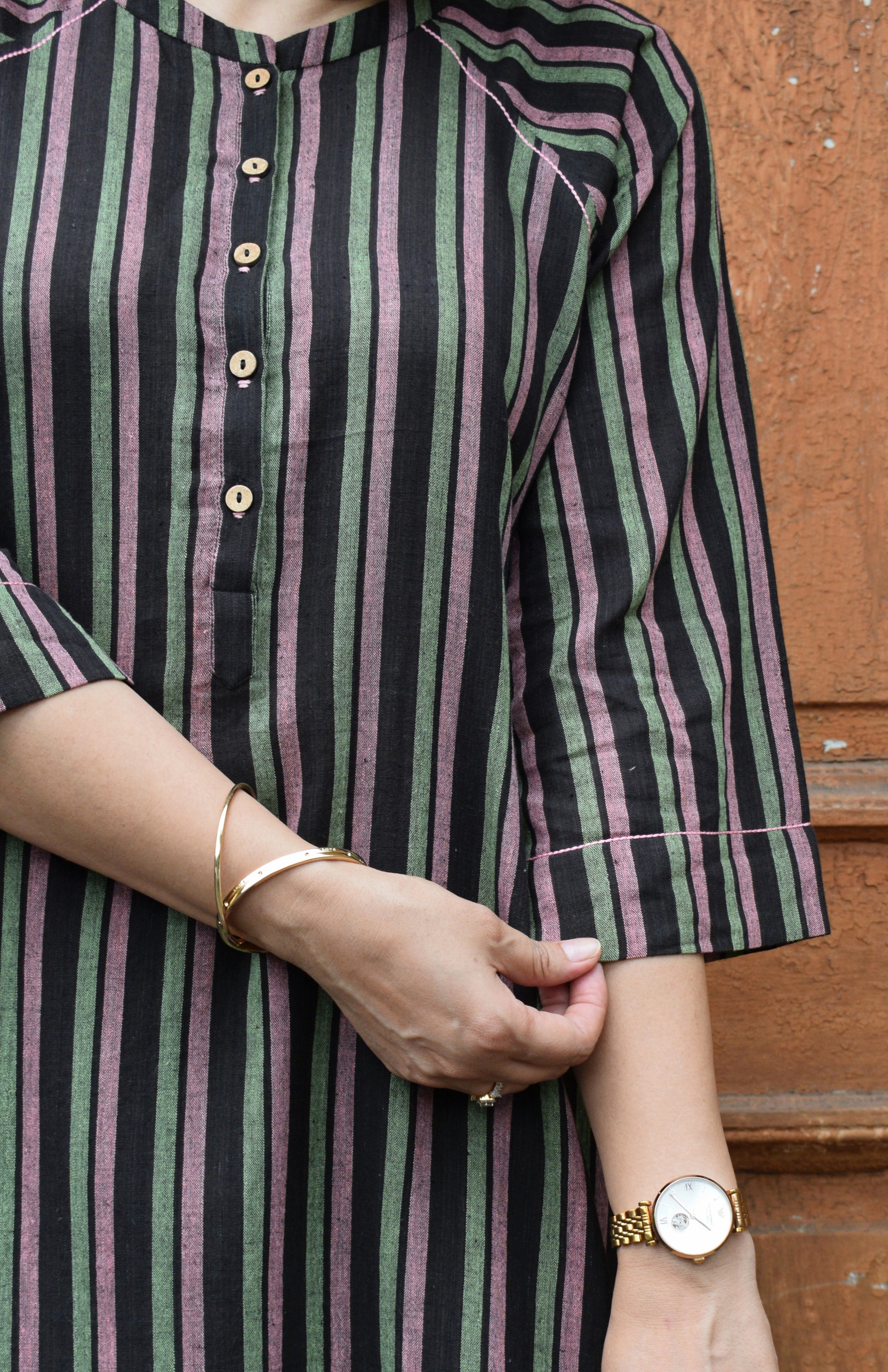 Coral Stripe A line kurta in Handwoven cotton