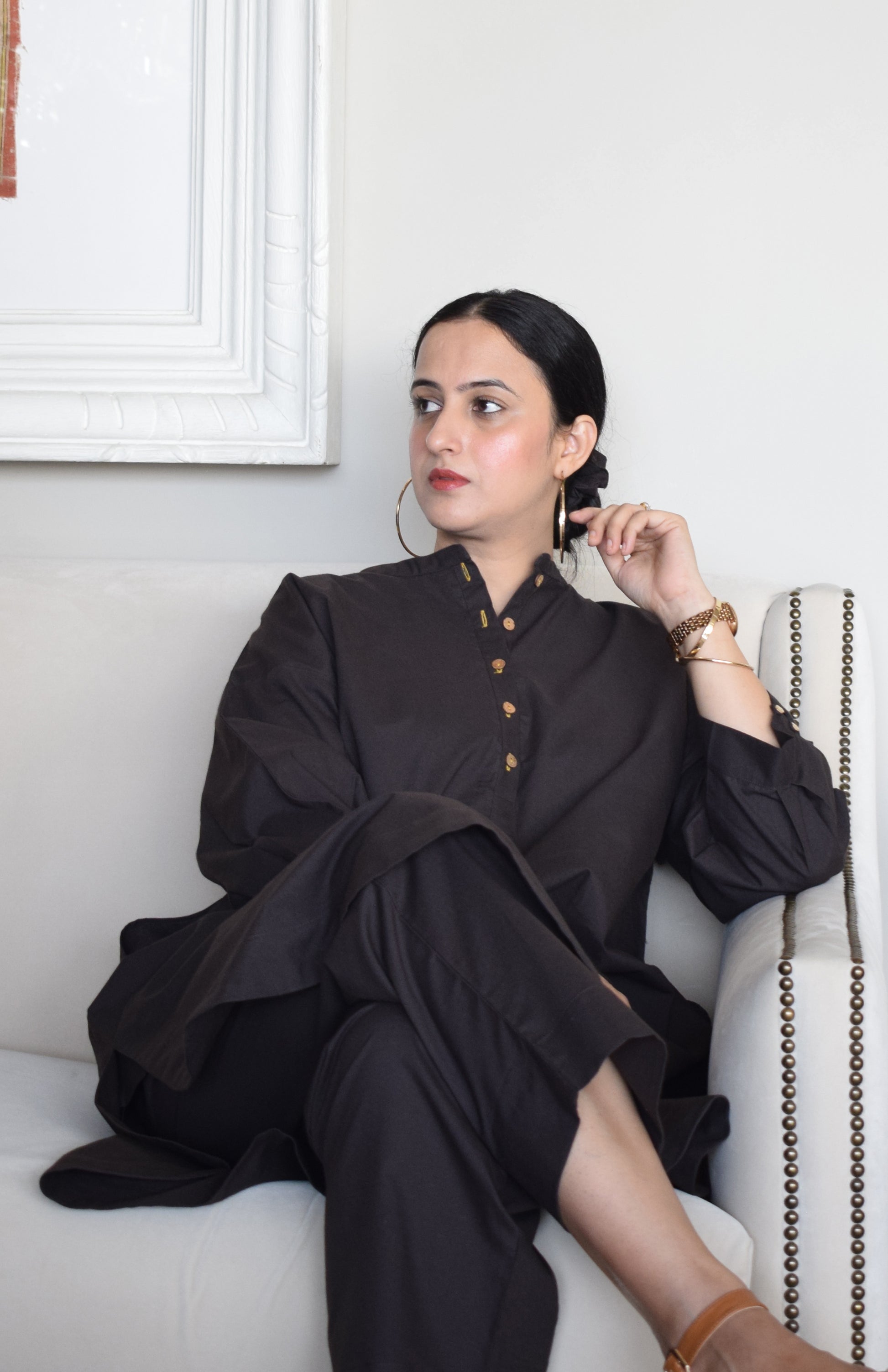 Pure Linen | Kurta & Pants SetPurple Linen Straight Fit Panelled Kurta Set with Trousers