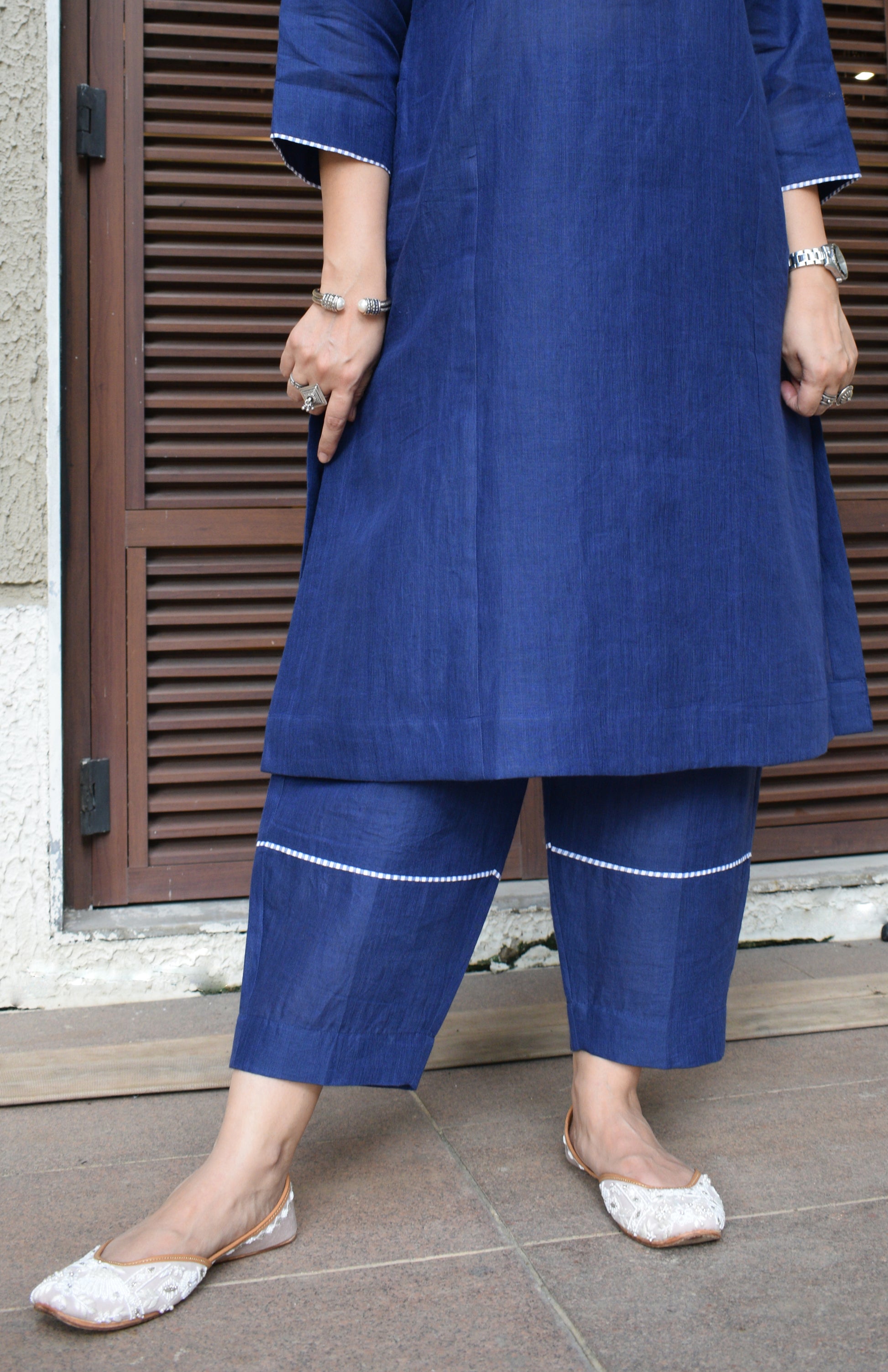 Our dark blue Linen trousers can be styled with any of our straight fit linen kurtas - white or blue, for a smart office wear look.