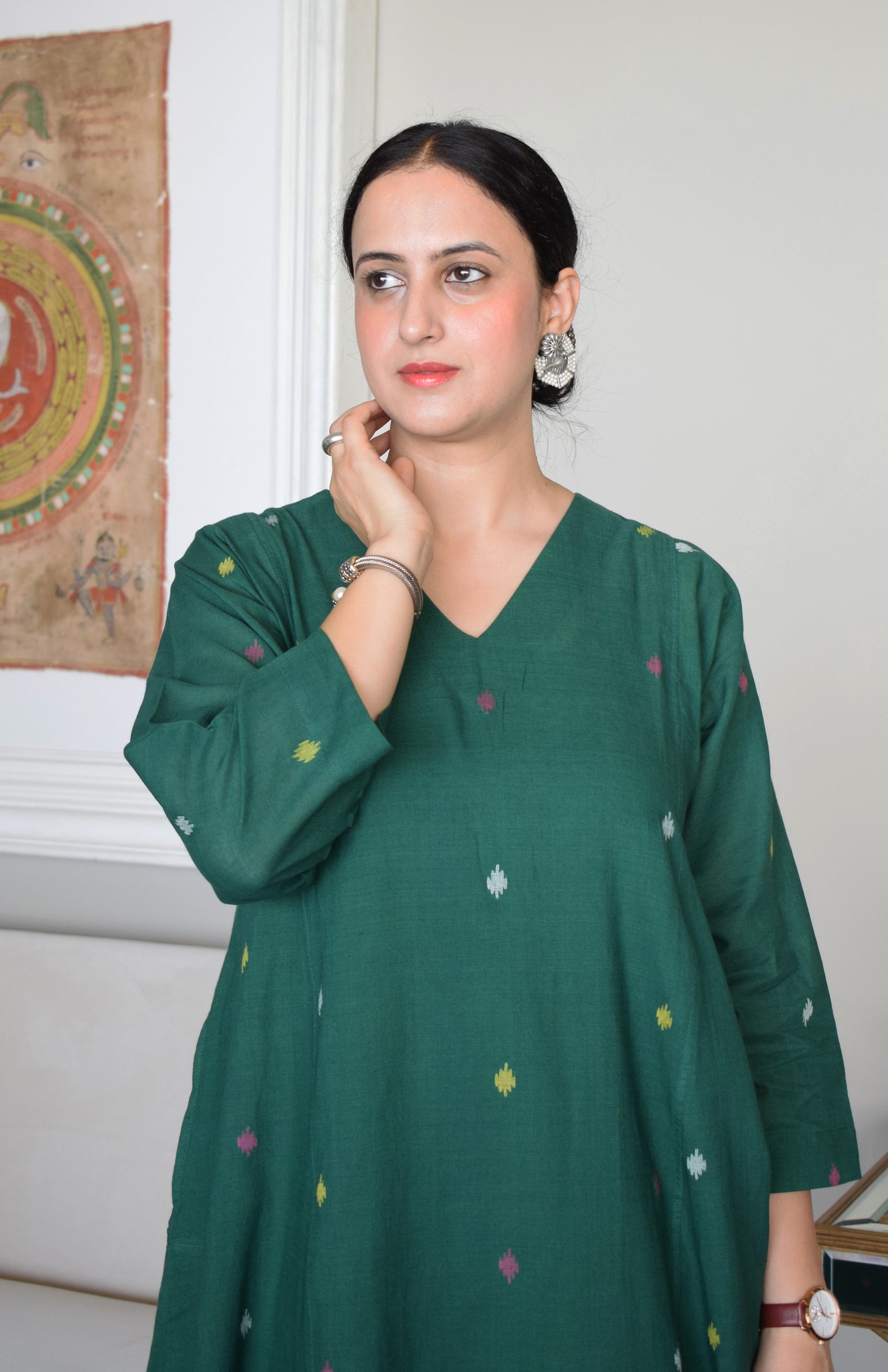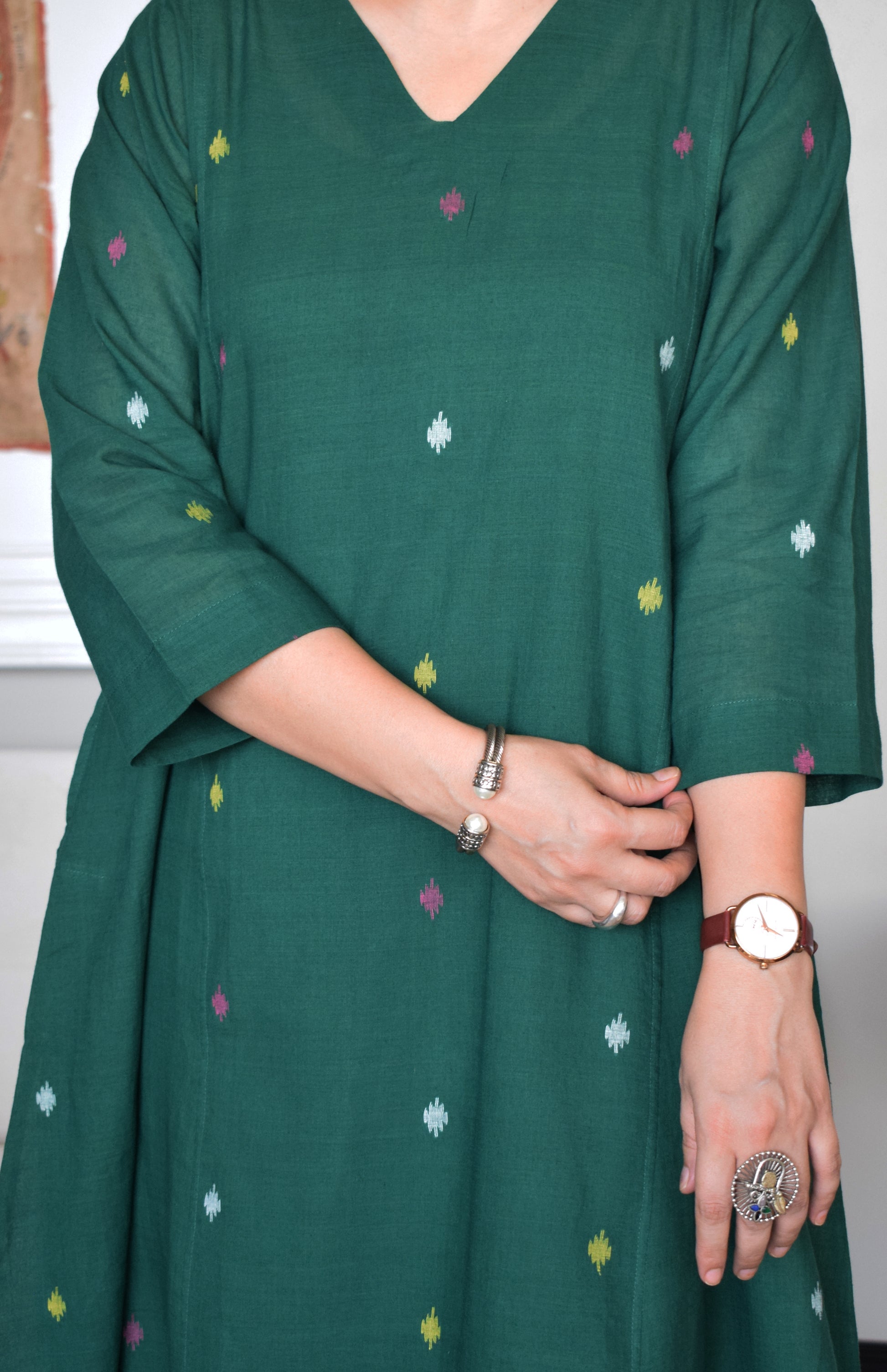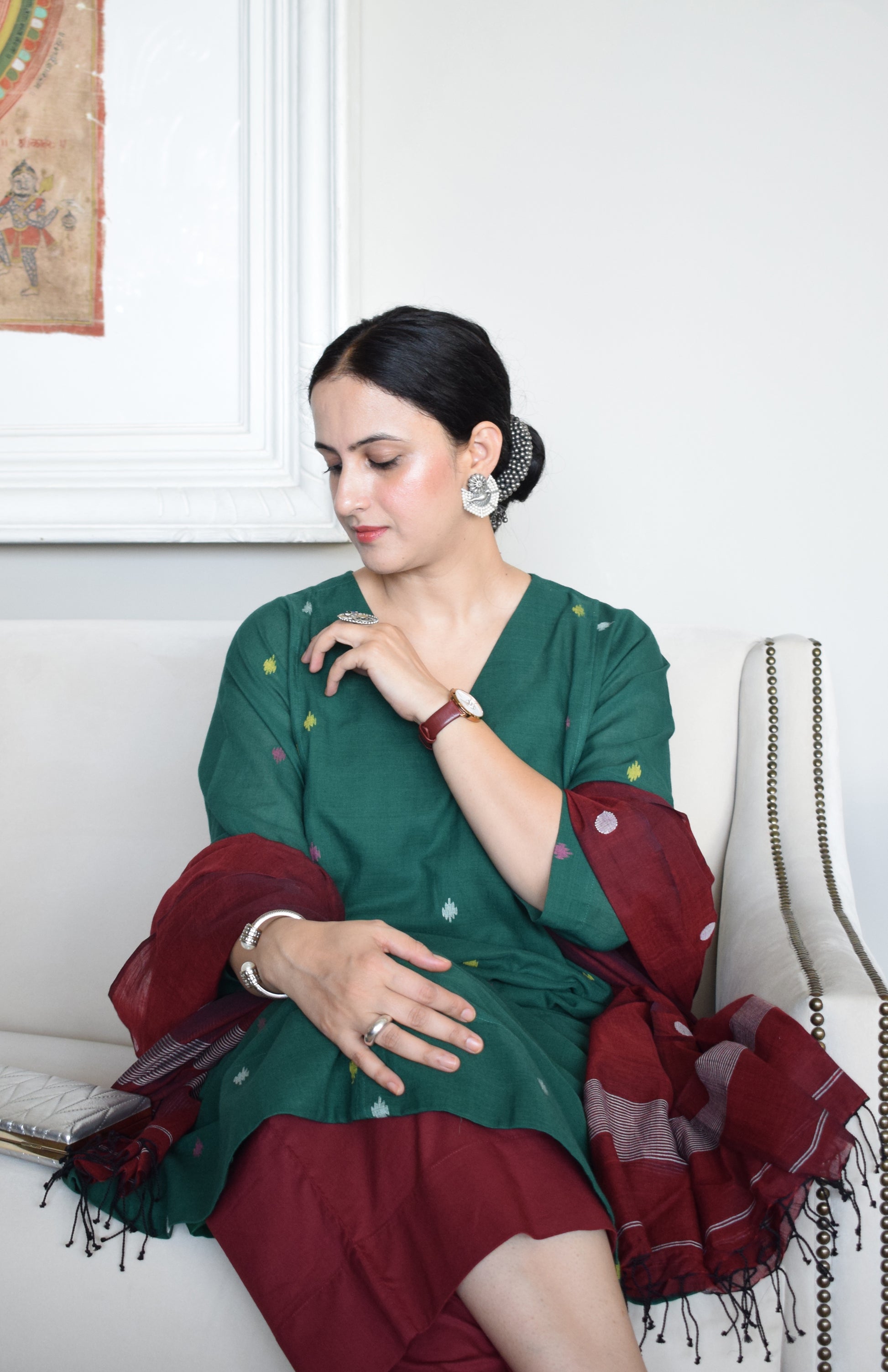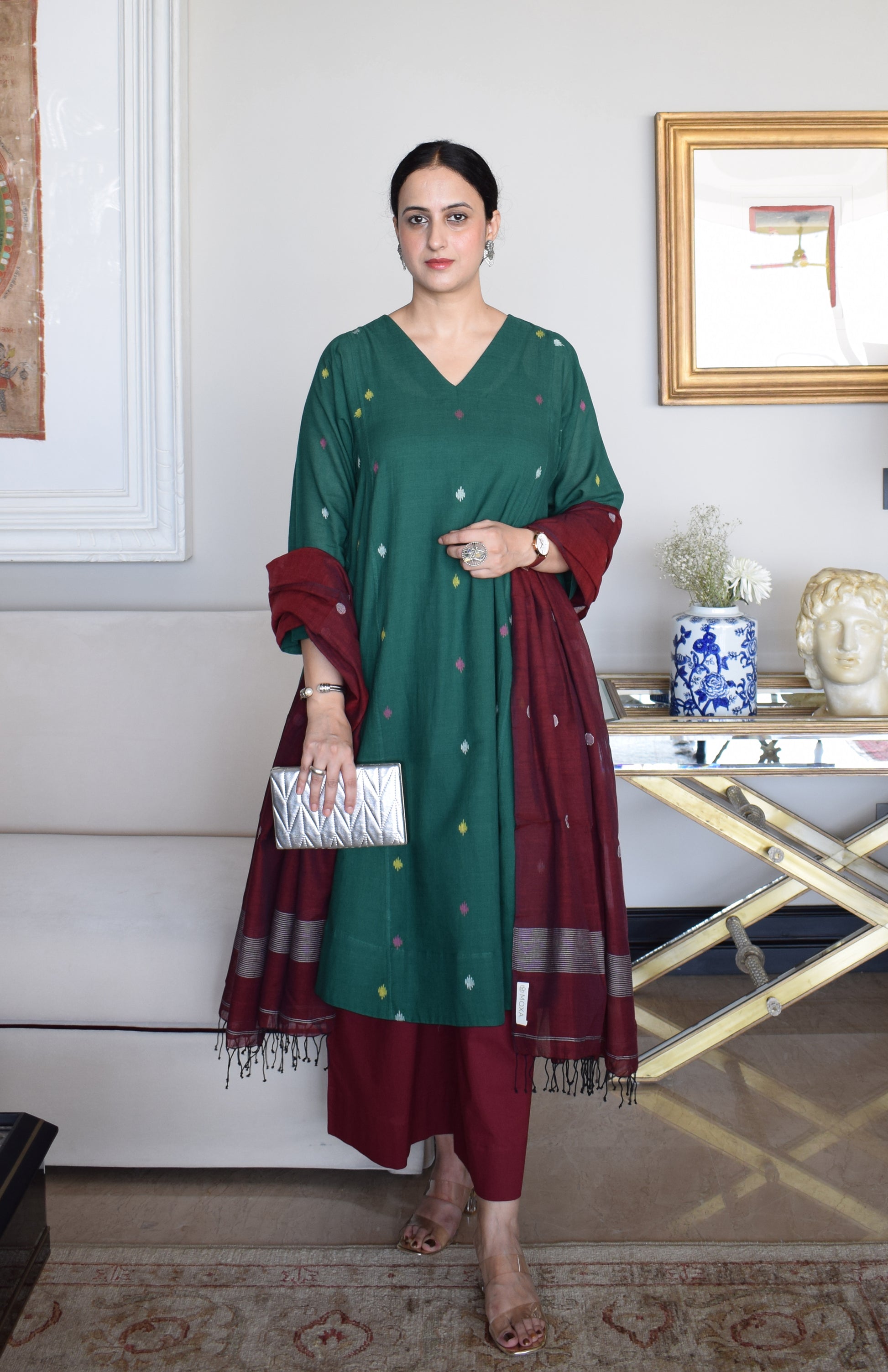 Forest Green Jamdani Phiran with Maroon Pyjama