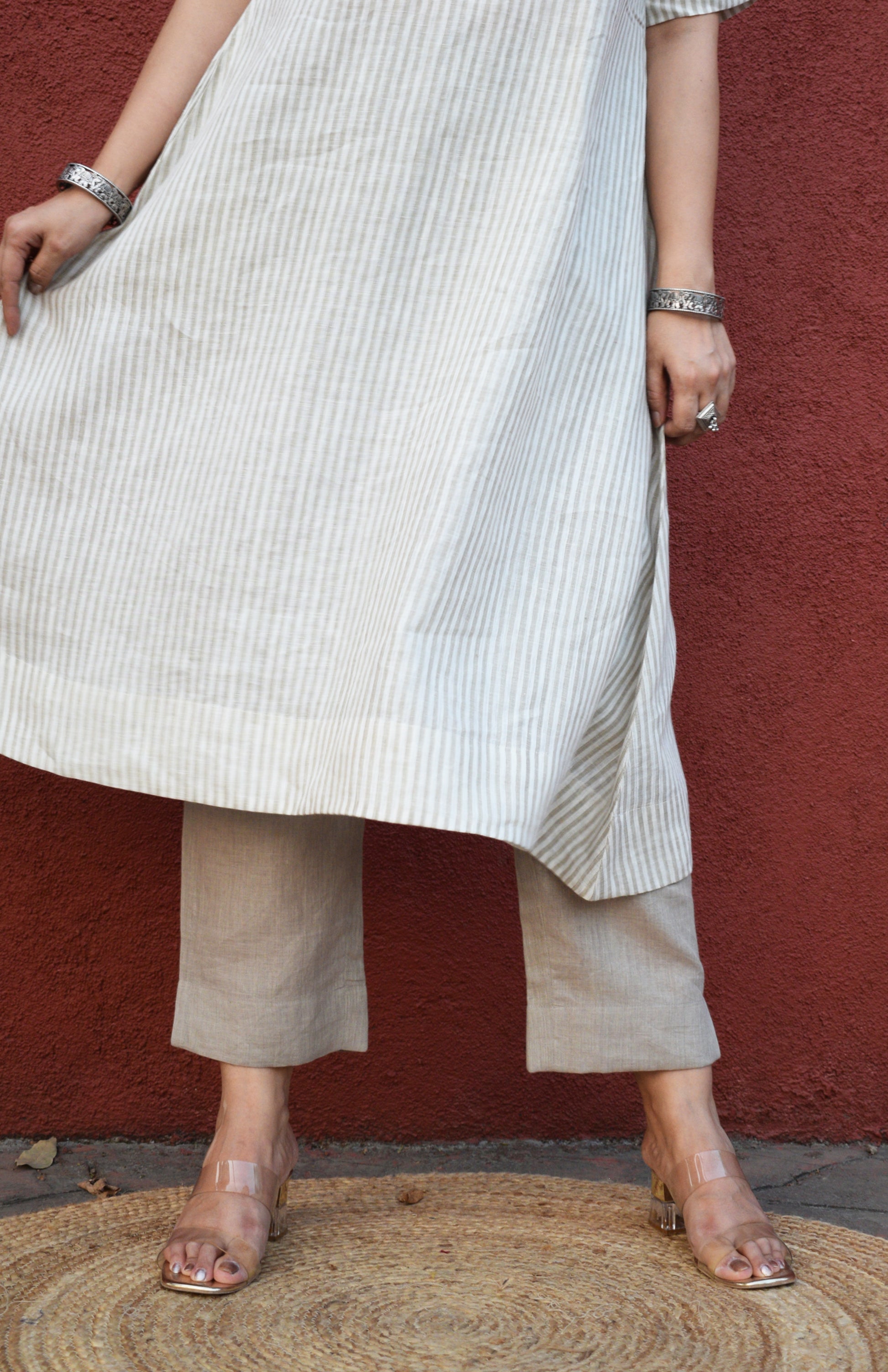 The khaki linen trousers is a must-have garment in every wardrobe. It can be best paired with our linen kurtas. Or styled with any solid colored kurta for a go-to travel and casual attire.
