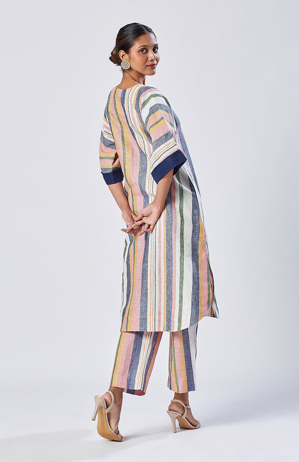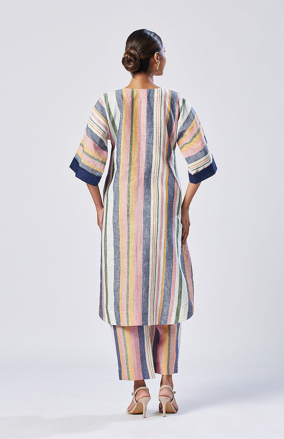 Coral Stripe Bias Paneled kurta in Handwoven cotton