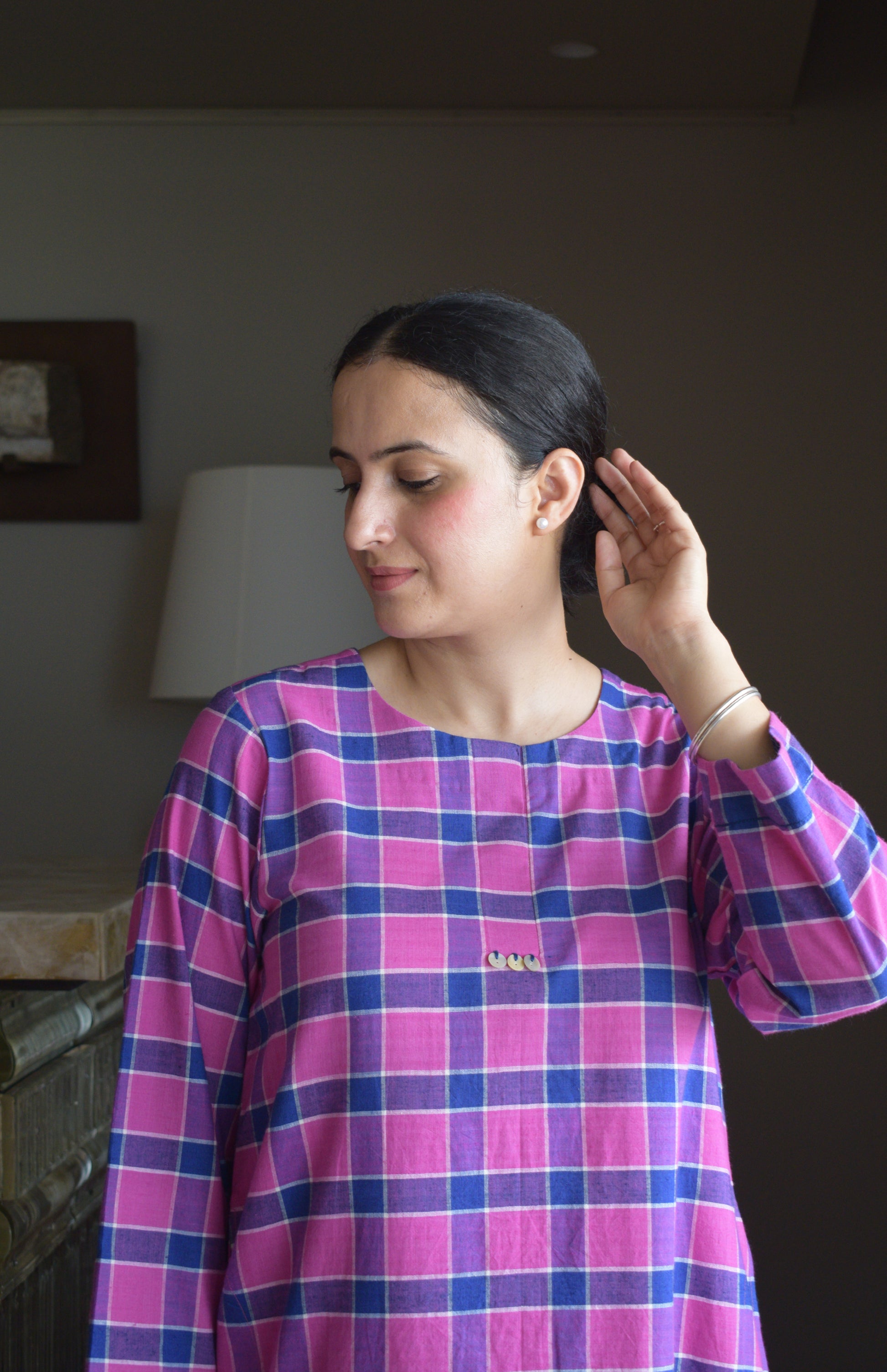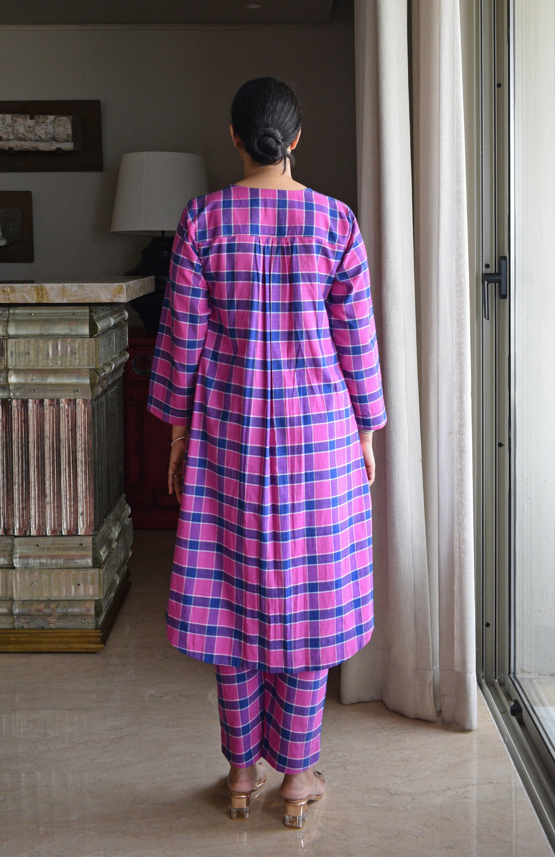 Orchid Pink Co-ord Set in Handwoven Cotton Checks