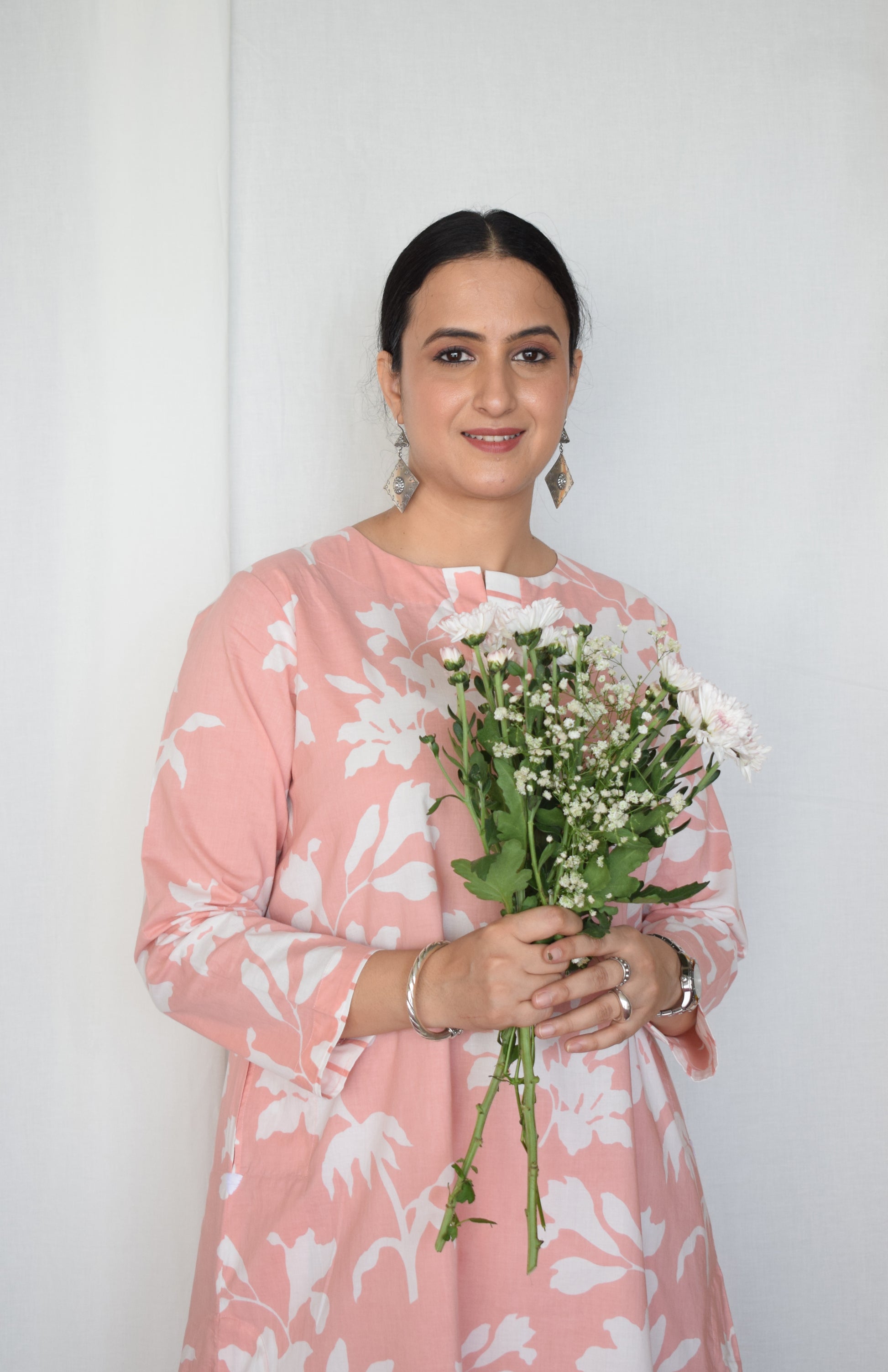 Coral Stripe Bias Paneled kurta in Handwoven cotton