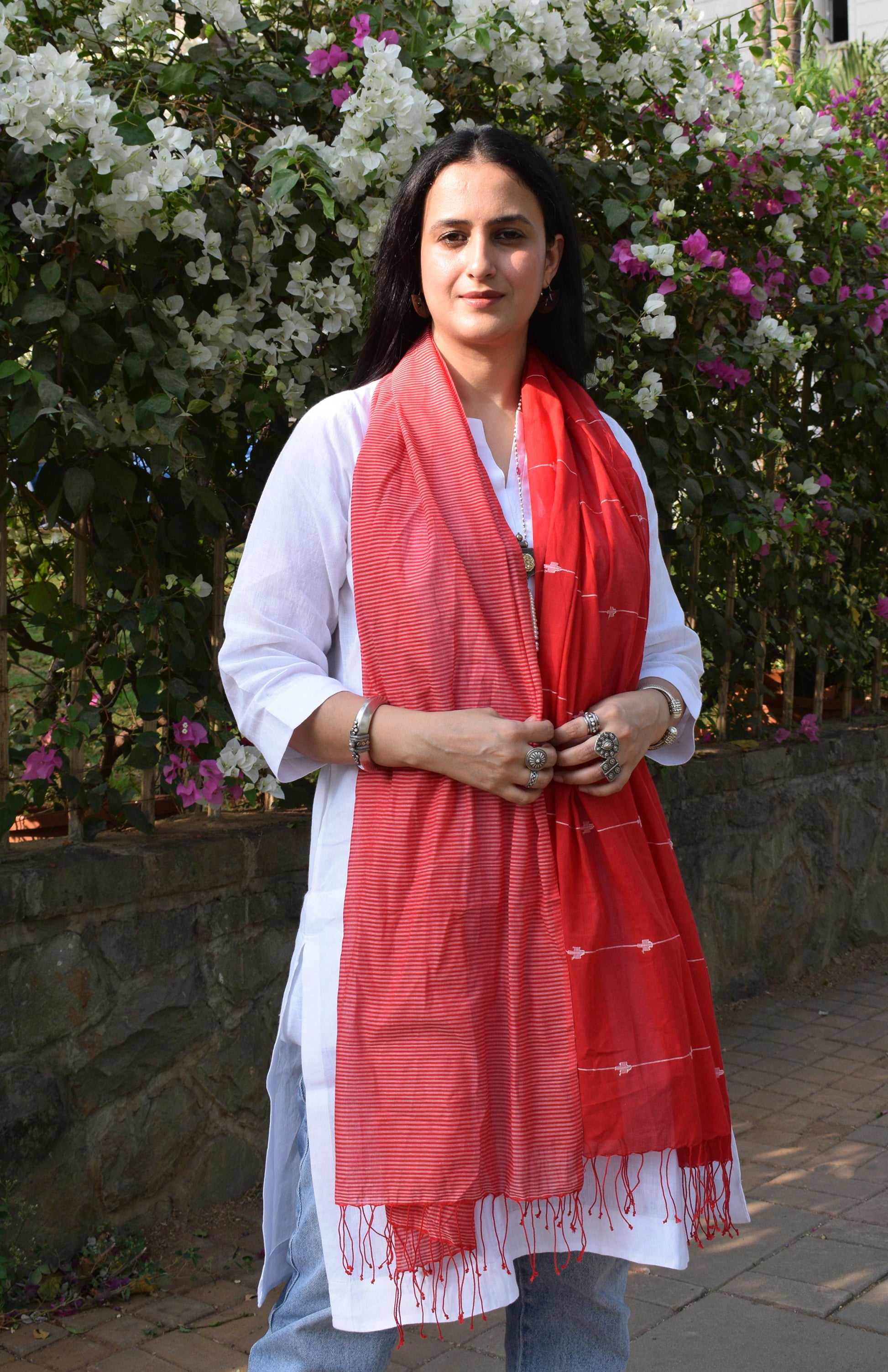 Our handwoven jamdani stole is versatile and can be styled with almost any outfit. It is best paired with our jamdani phirans and sunkissed white pyjama