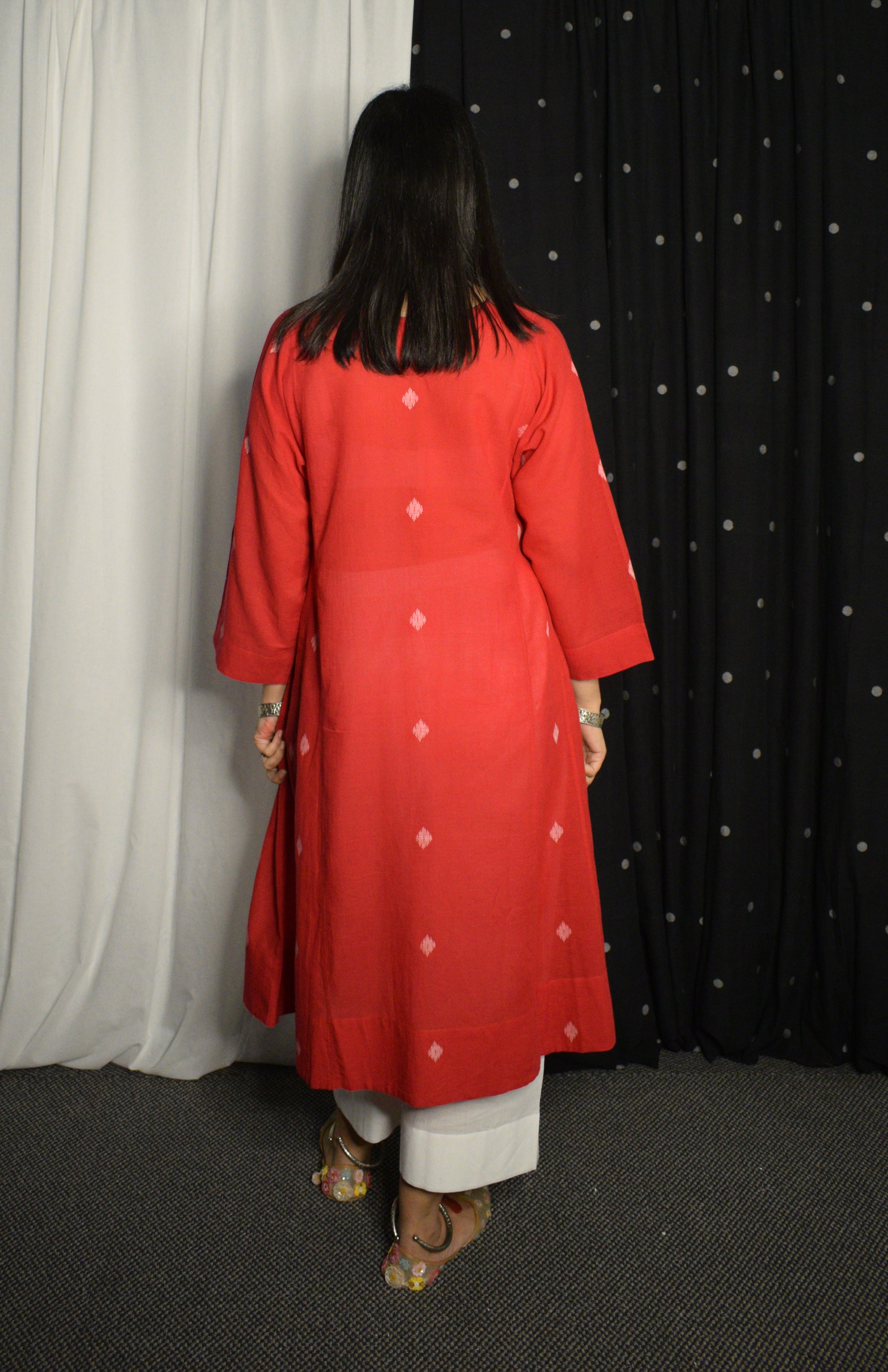 Coral Stripe Bias Paneled kurta in Handwoven cotton