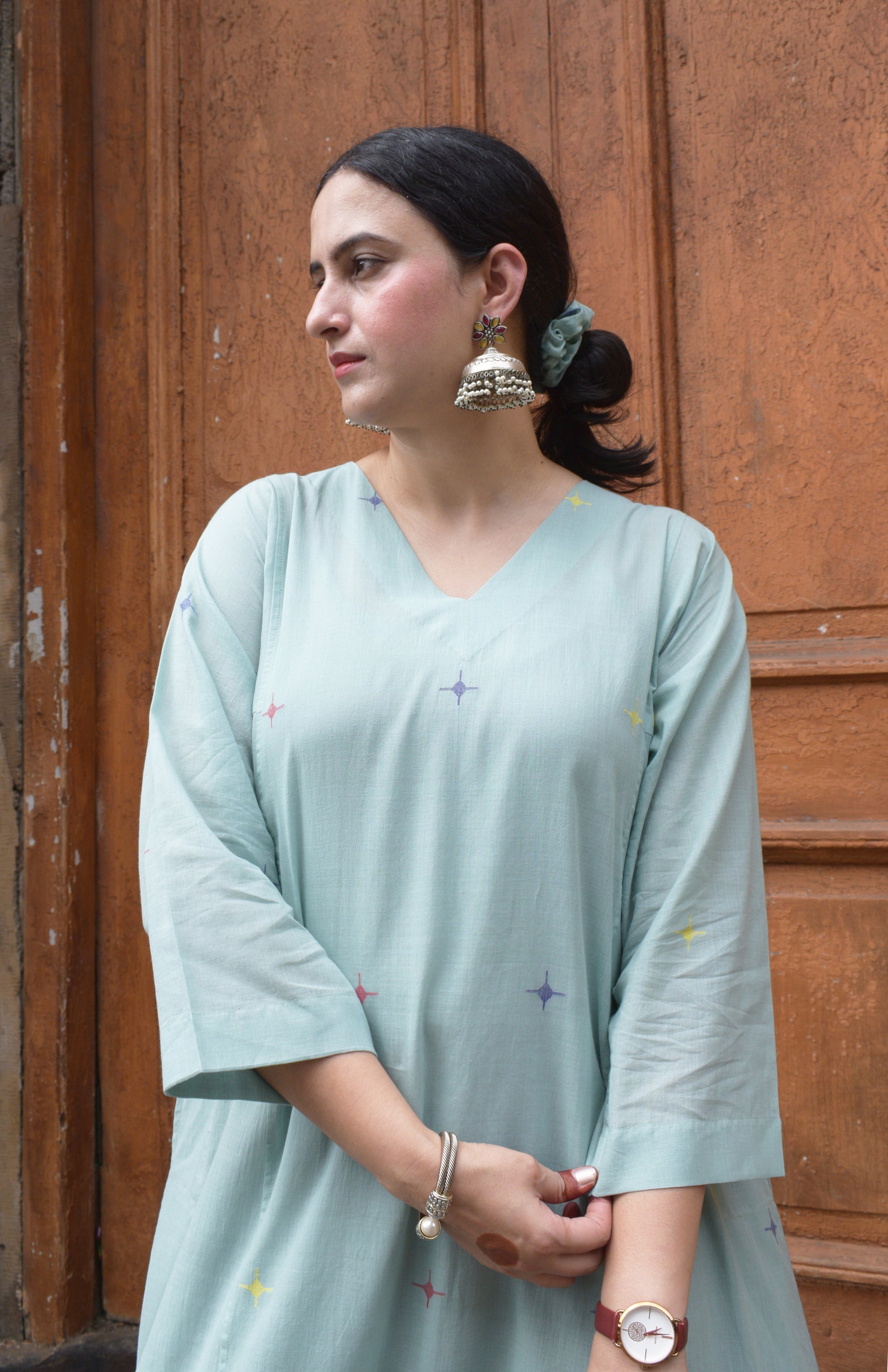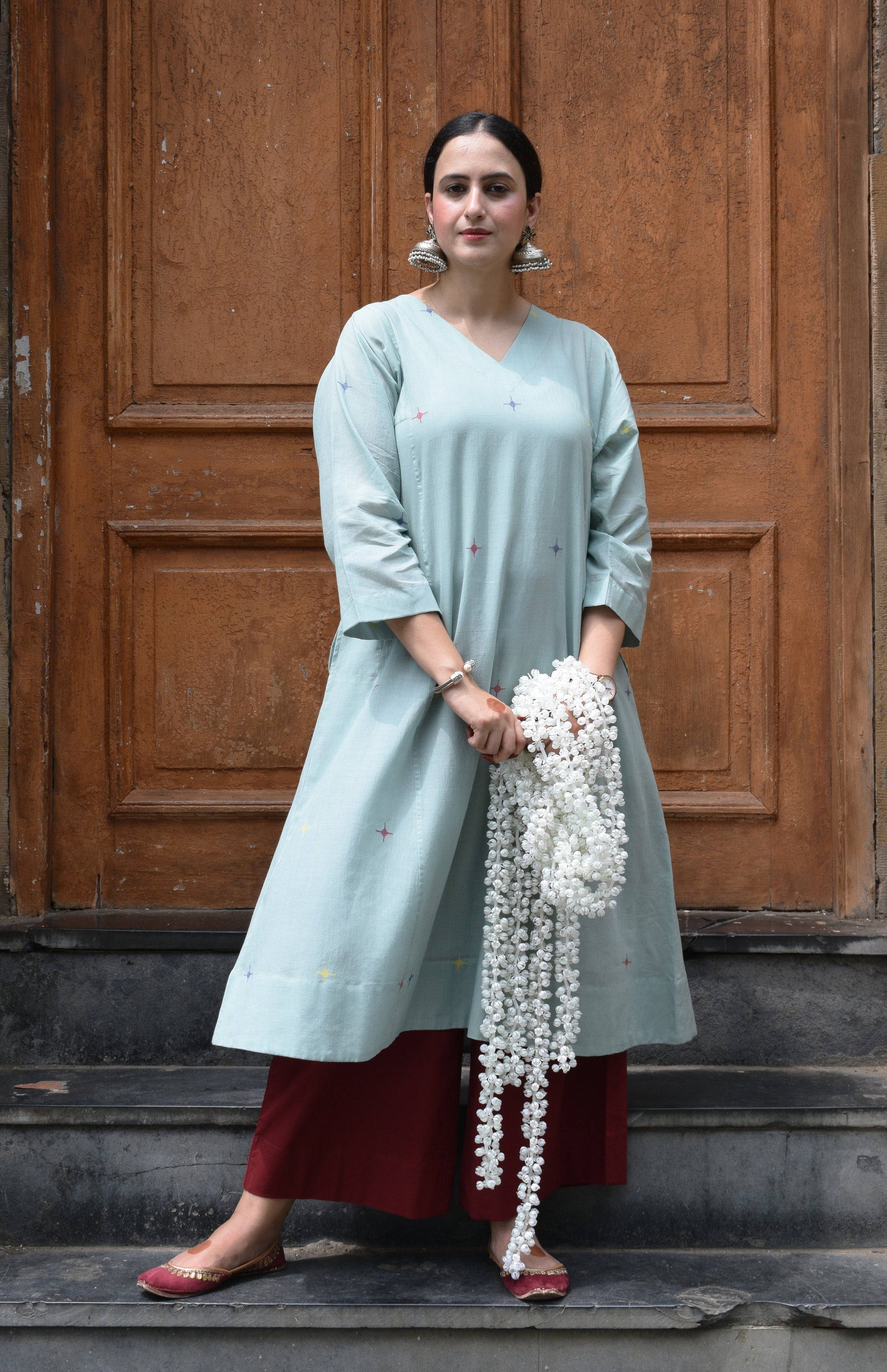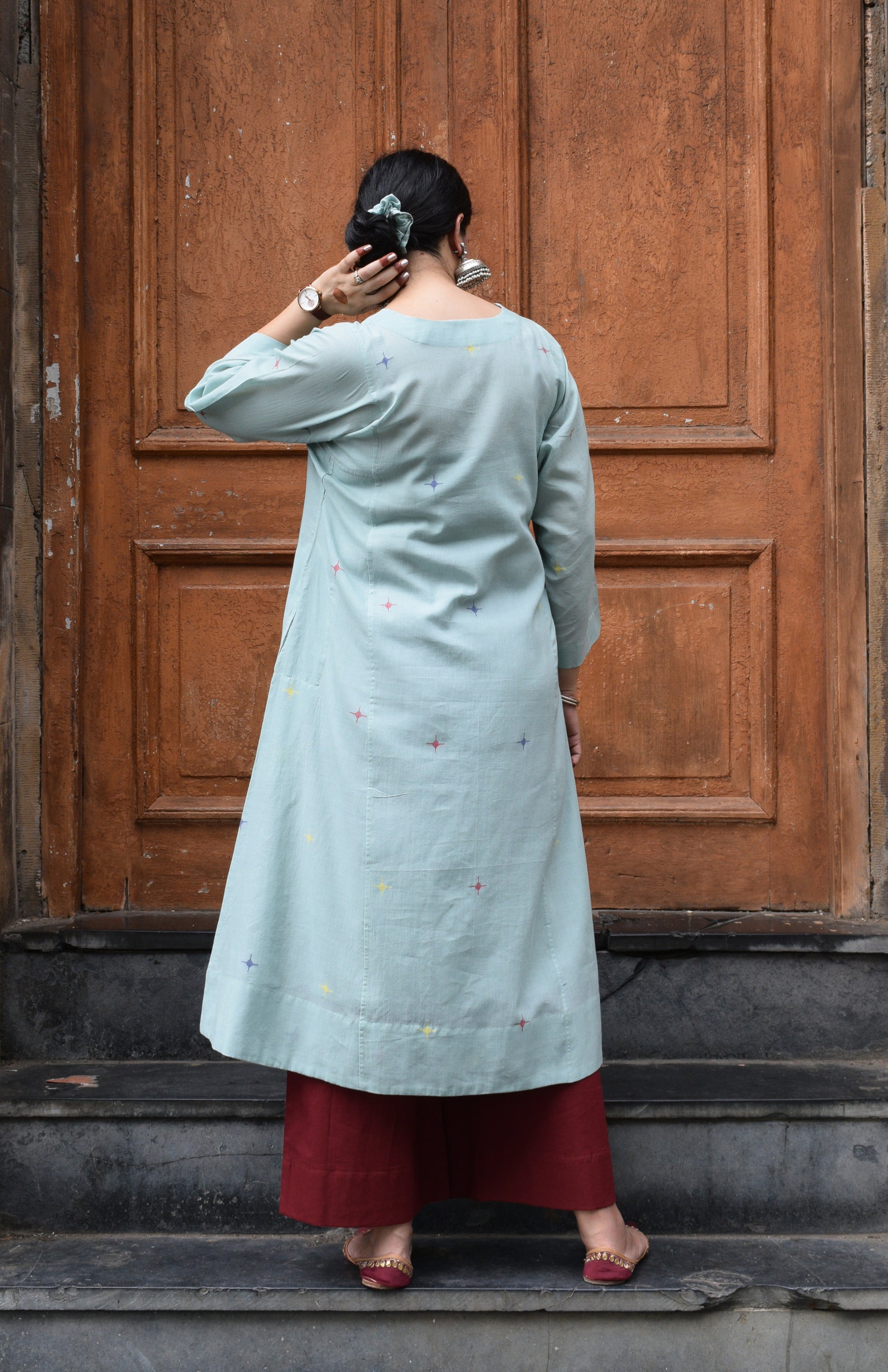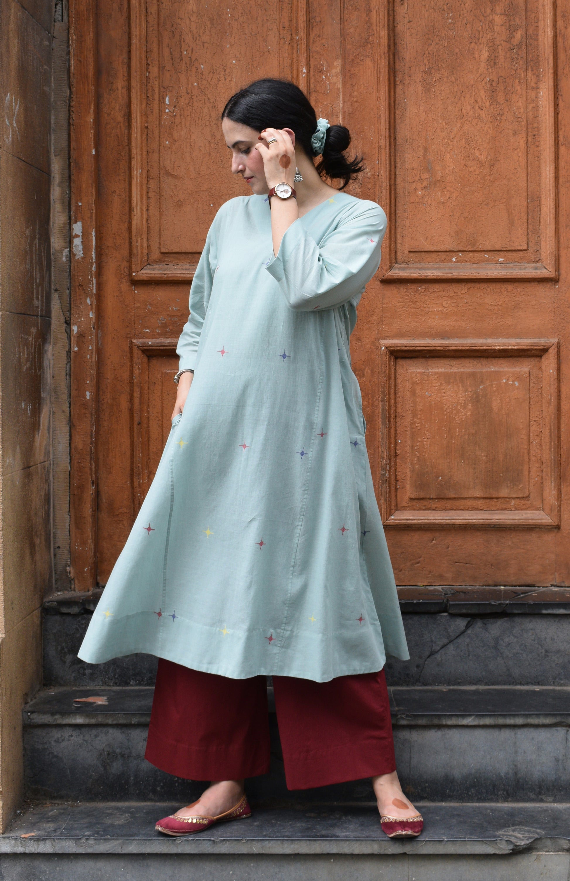 Perfect for everyday wear, this kurta is best paired with our maroon basic pyjama or sunkissed white basic pyjama. You can also style it with denim and a chunky silver neckpiece for an everyday casual look