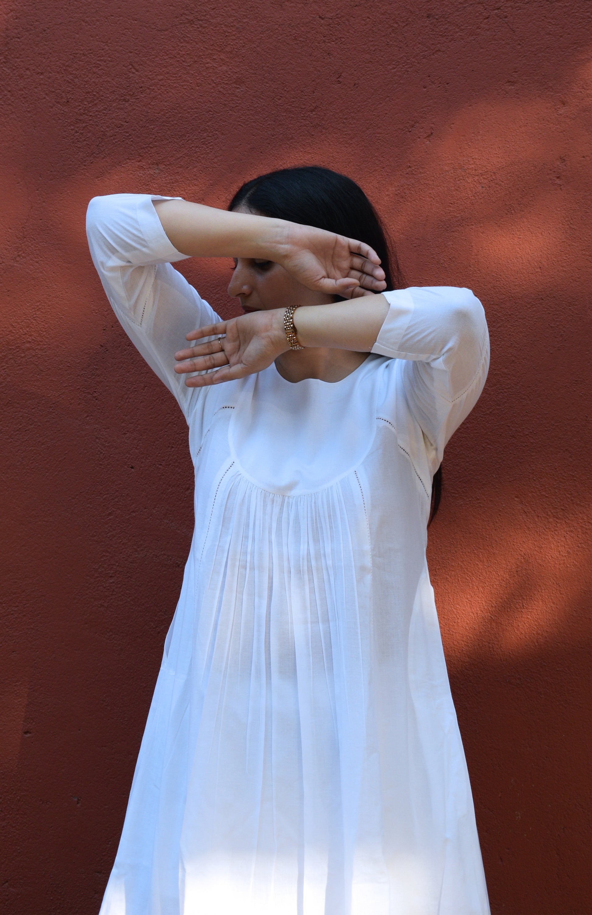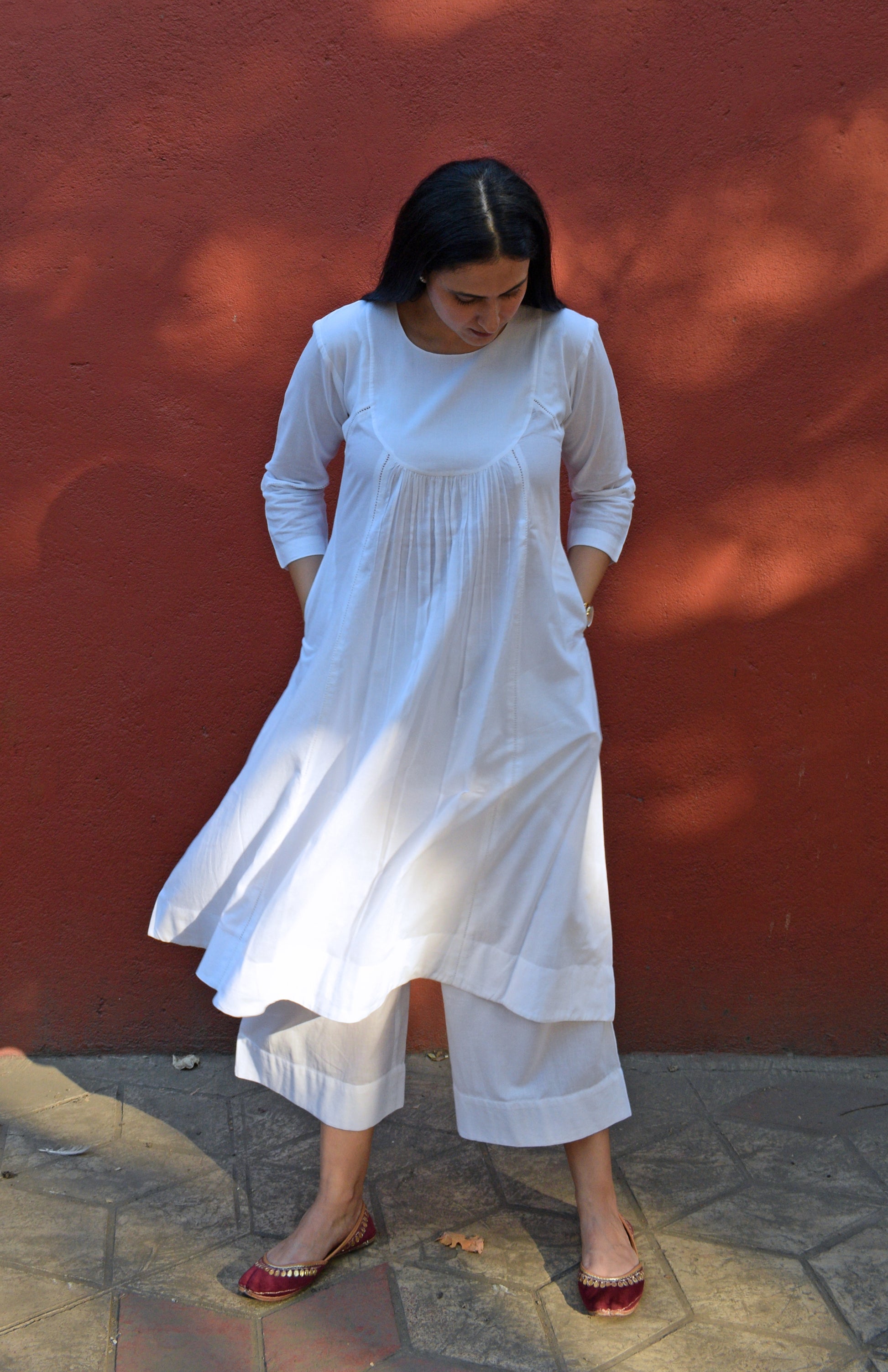 Our Sunkissed white kurta with round neck is the perfect summer wear to own. It is best paired with our Sunkissed white pyjama.