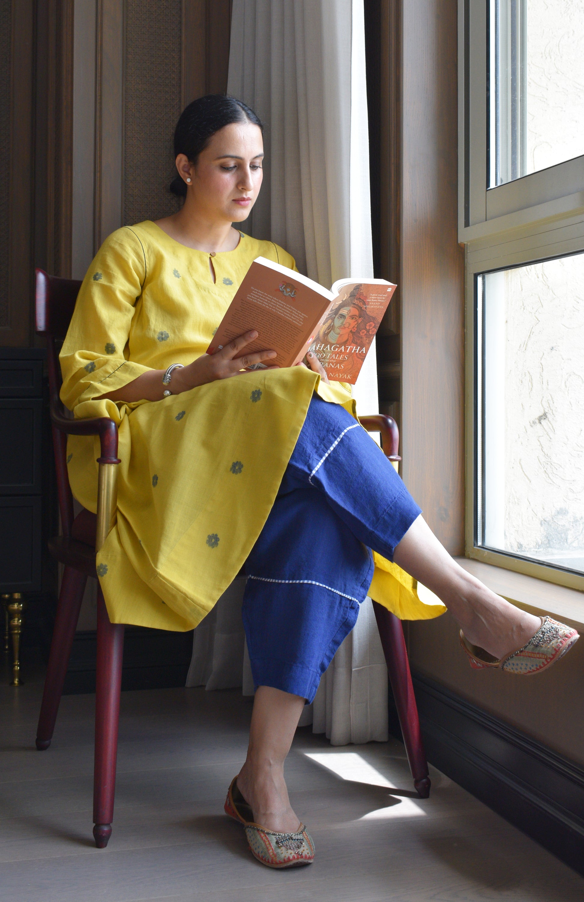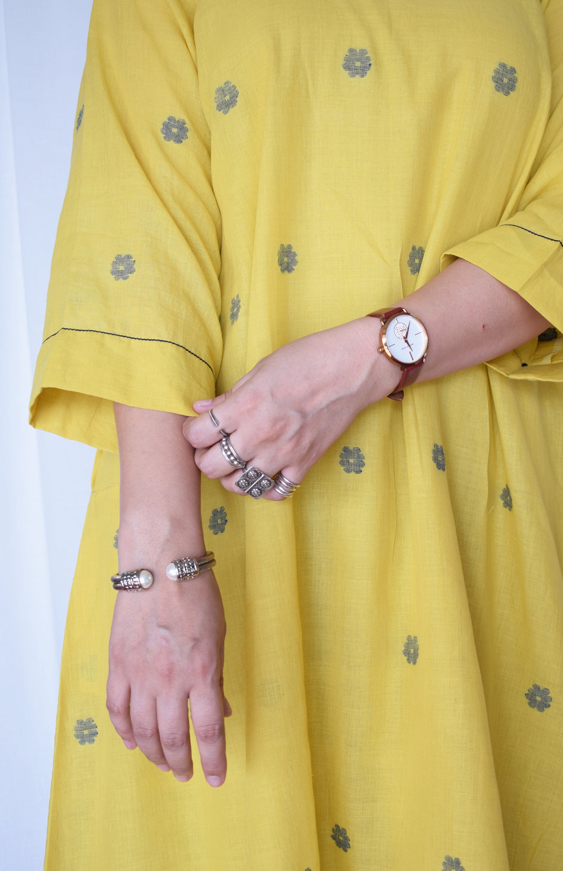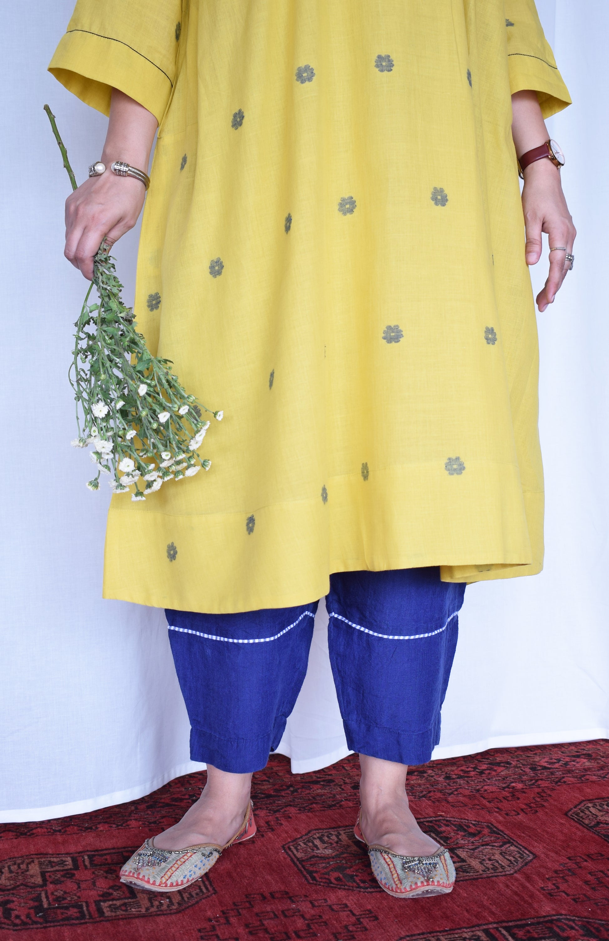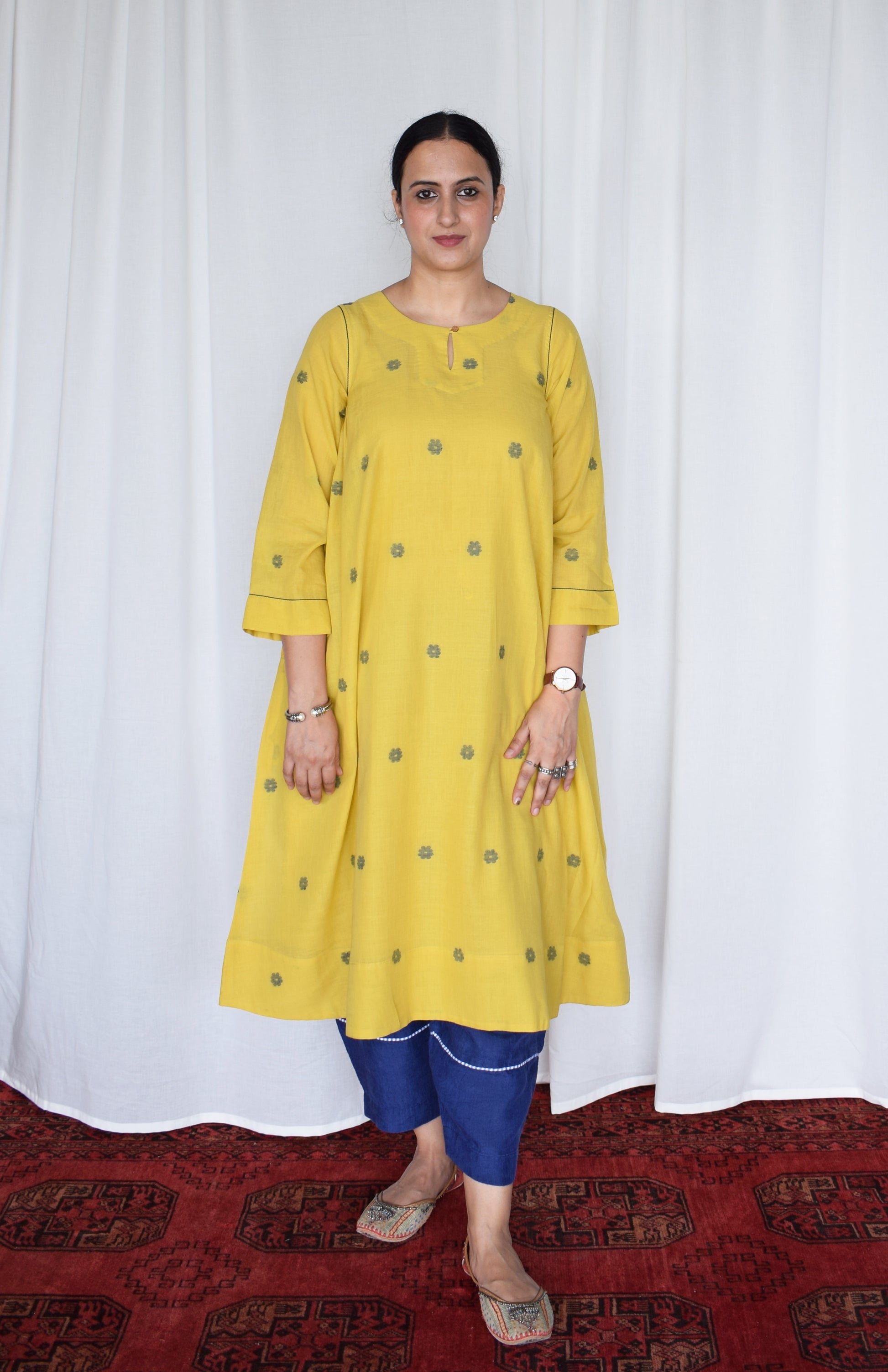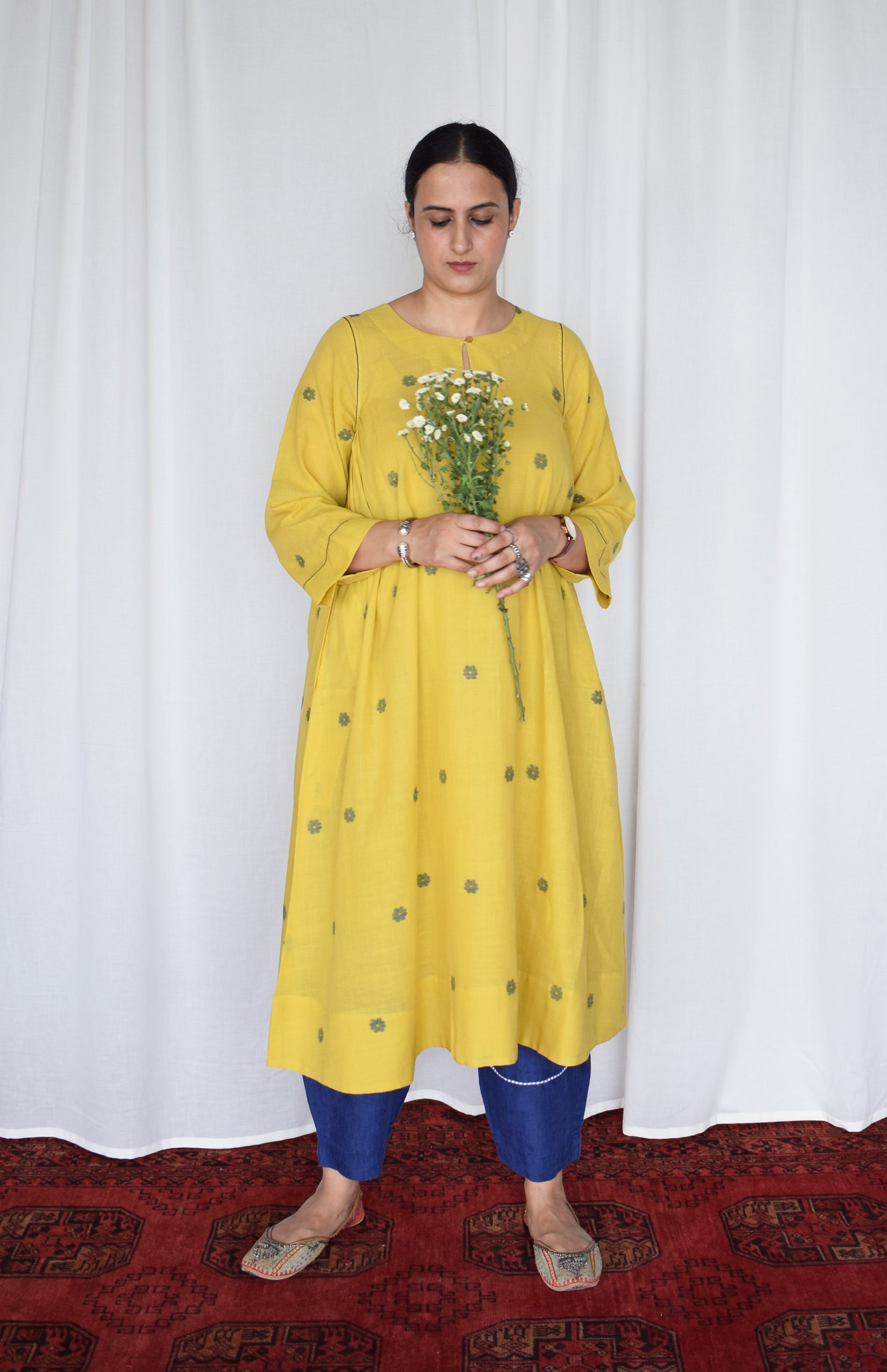 perfect for everyday wear, this kurta is best paired with our off- white basic pyjama. You can also style it with denim for an everyday casual look or a chunky silver neckpiece with juttis for a festive look.