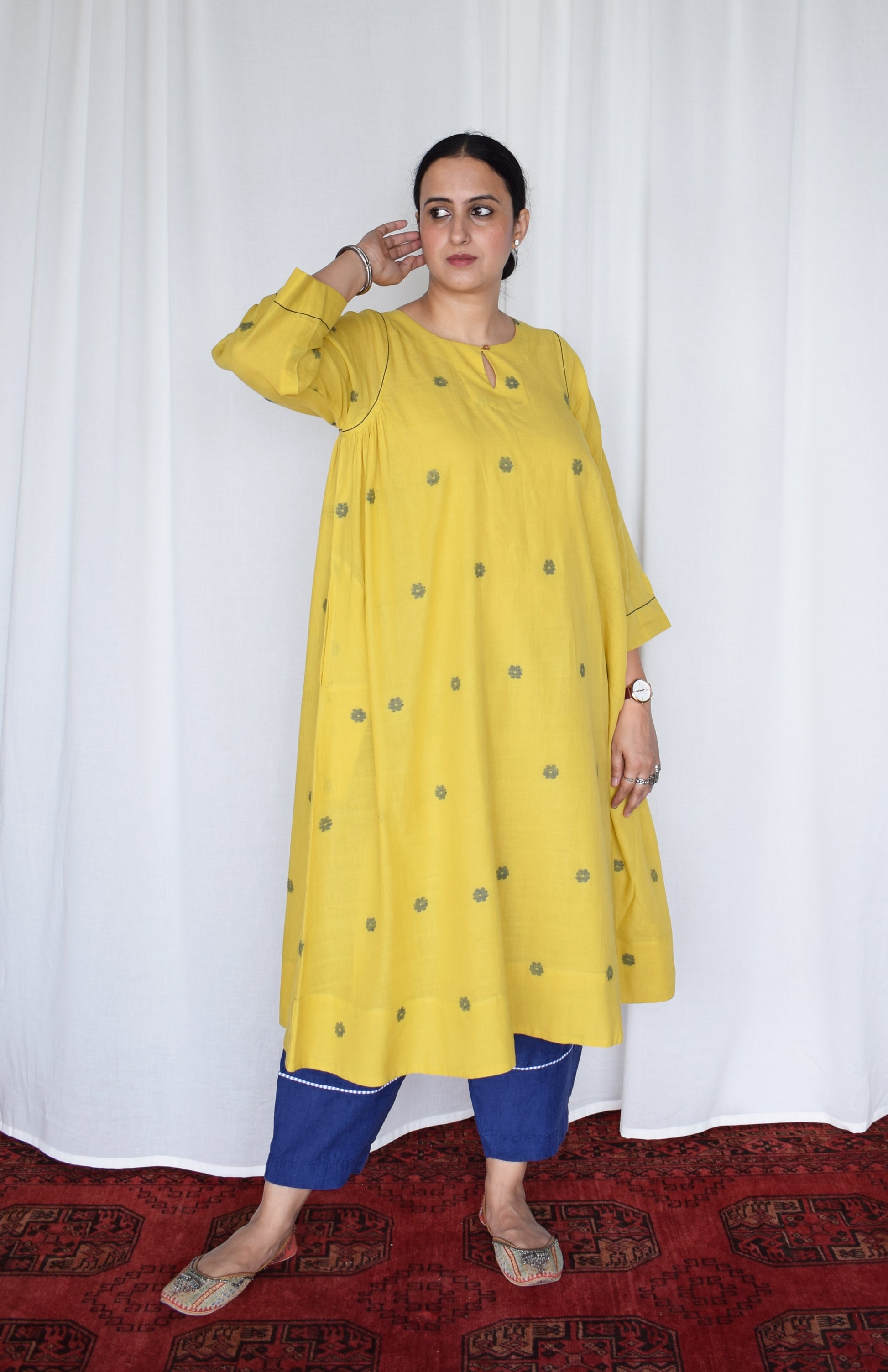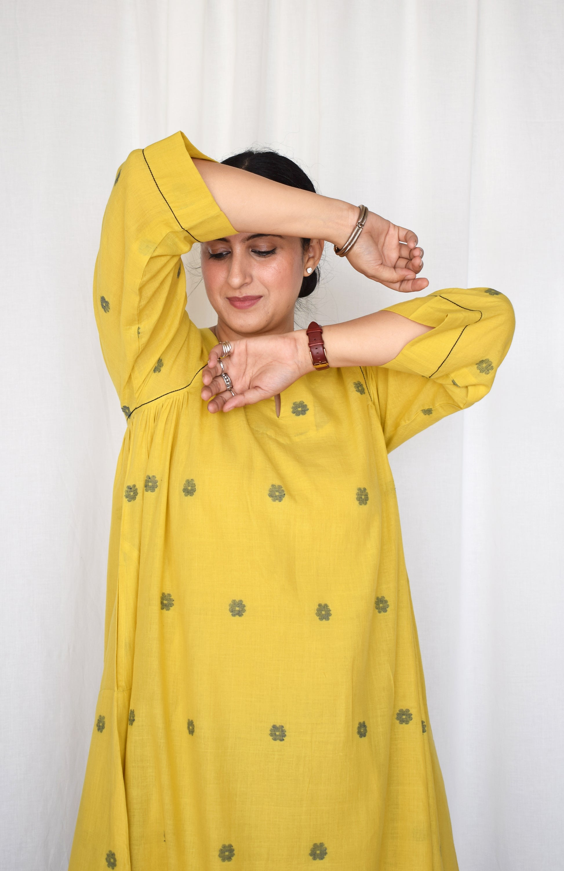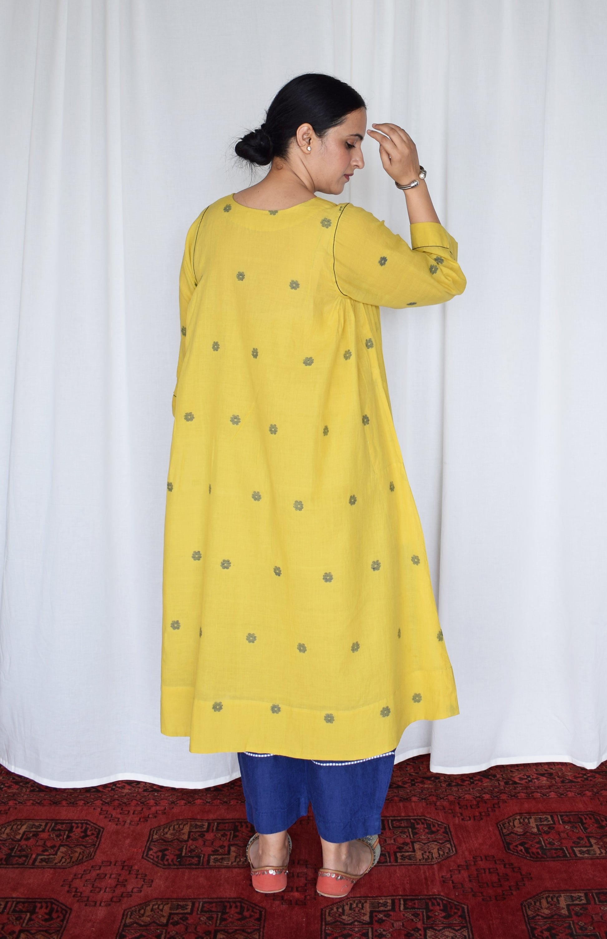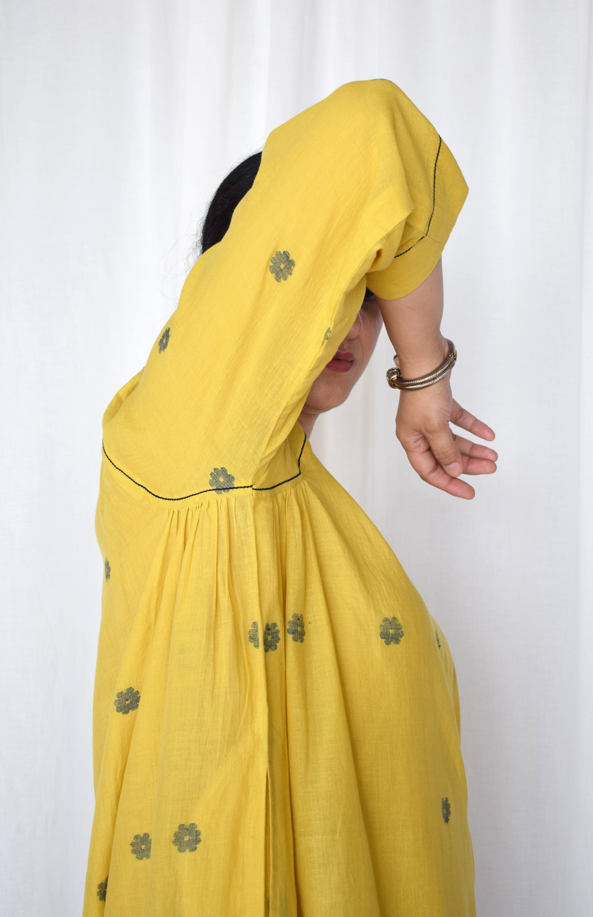 Sunshine Yellow Jamdani kurta with side gathers