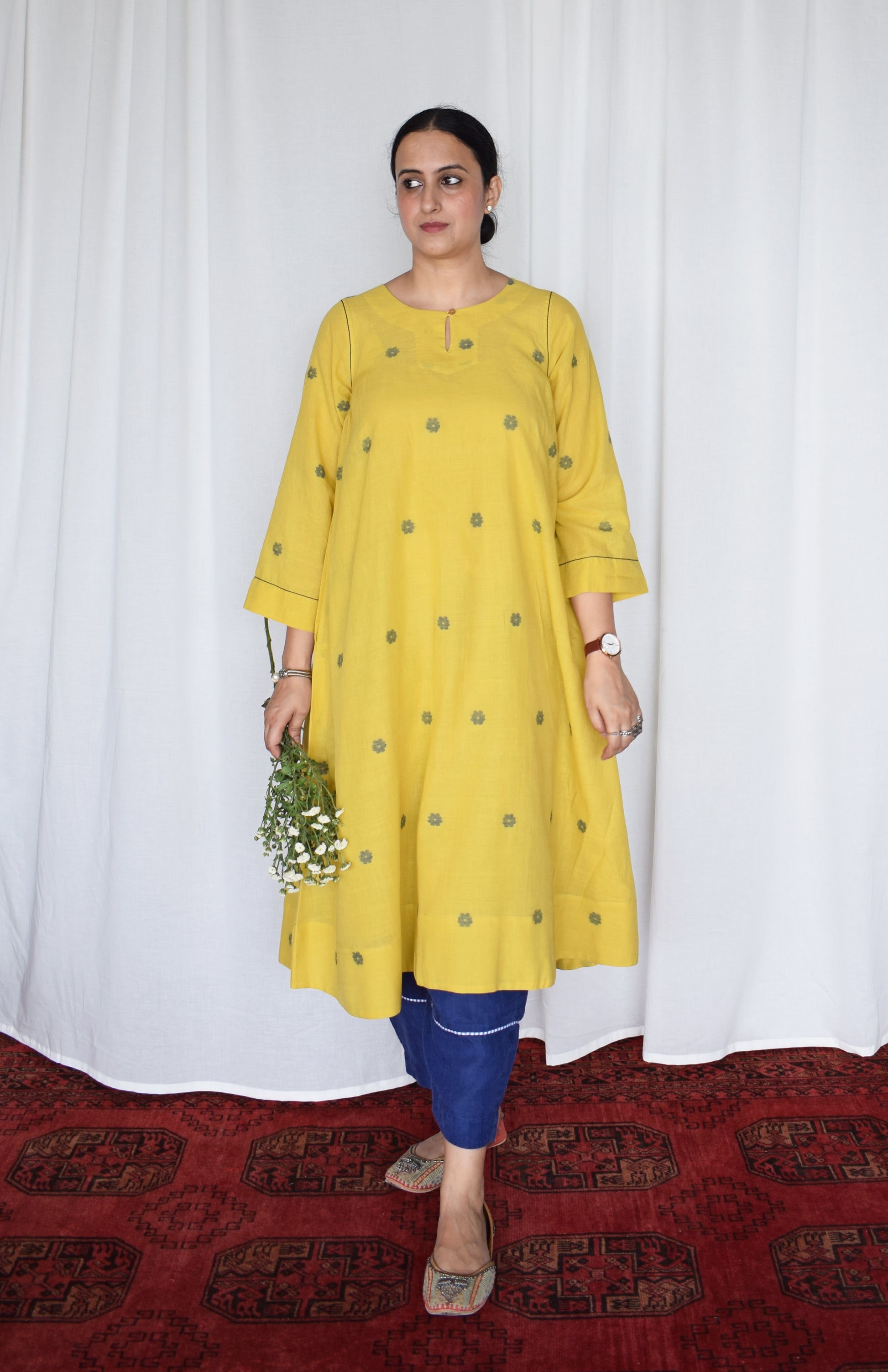 Yellow Jamdani A Line Kurta